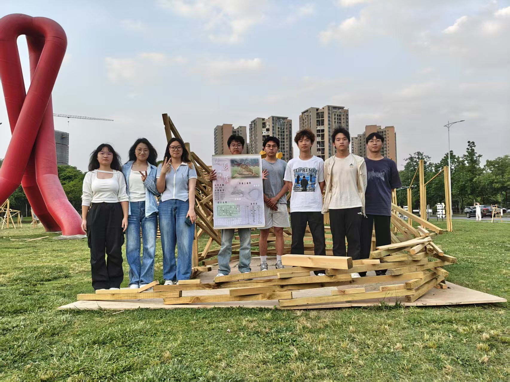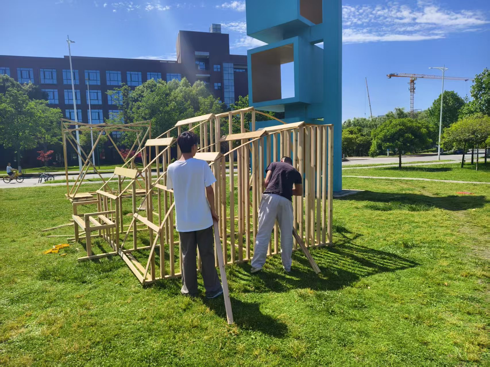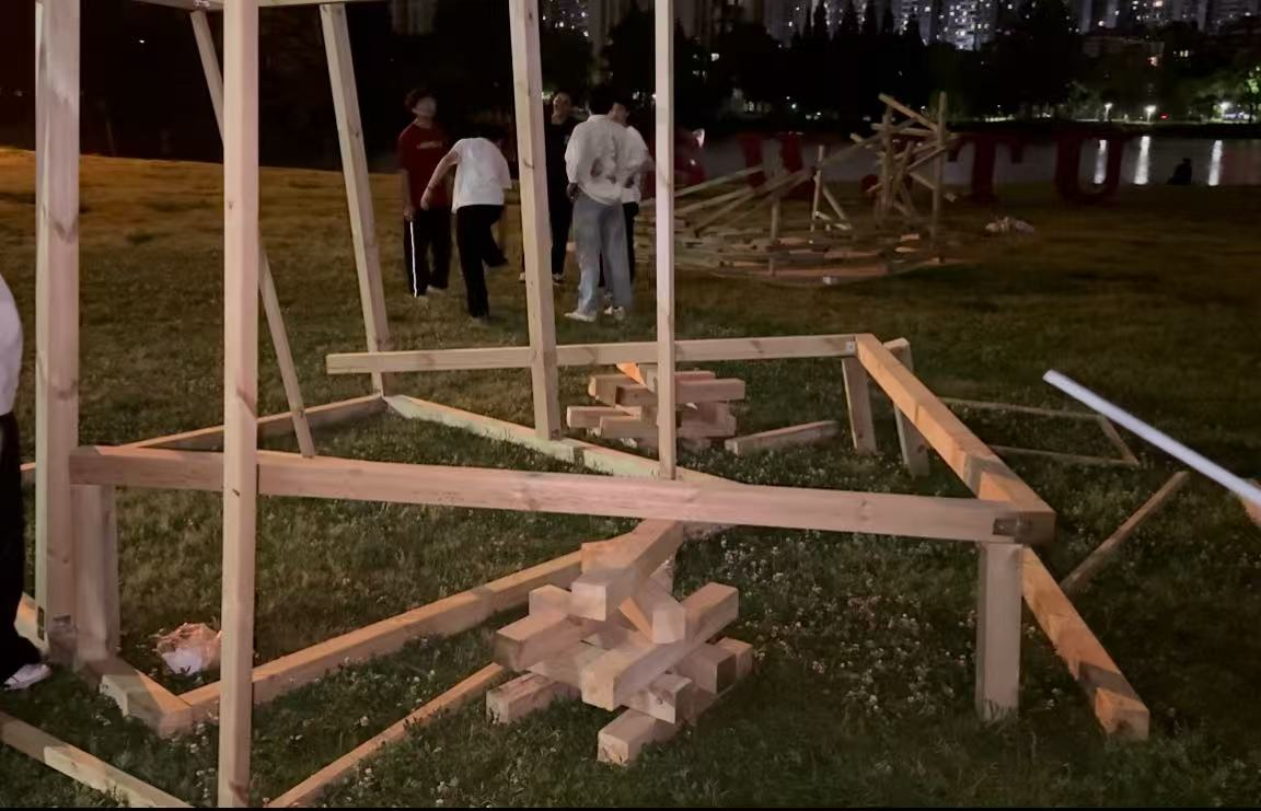 建造过程中的协调合作、分工搭配时细致入微的思考、遇见差错时的灵活处理,这是我们通过实践学习到的宝贵经验。前期的设计和整体的把控对于建筑的质量又或是速度来说都是至关重要的,将一个大的整体不断细分,最终成为一个又一个的模块进行搭建,在这个过程中,每一个角度、每一段线长都需要前期的不断钻研。