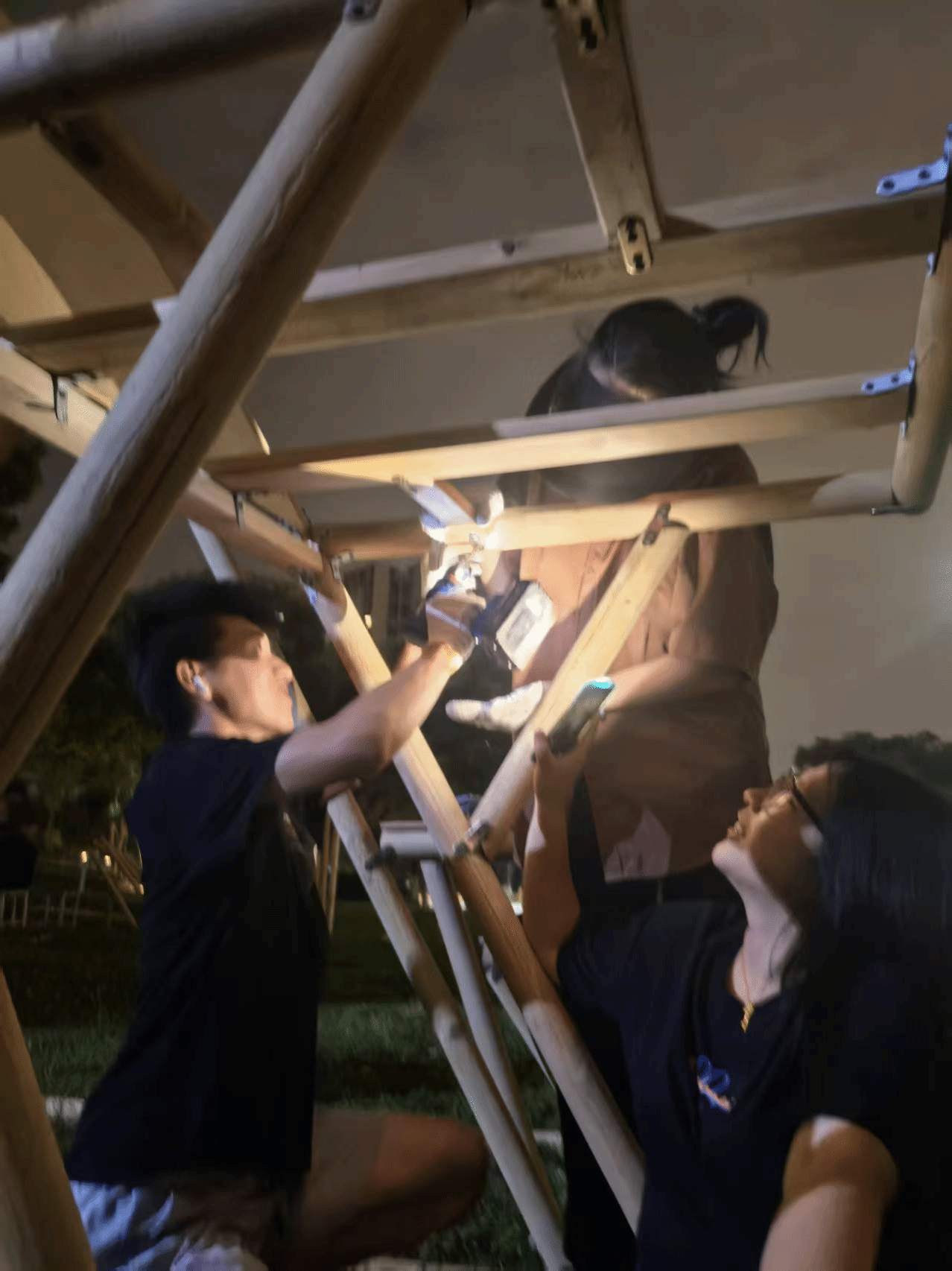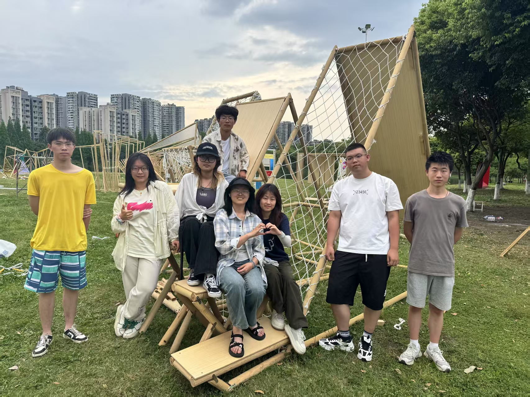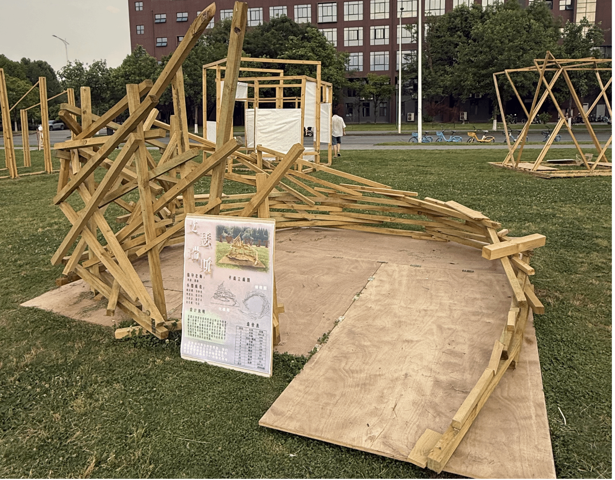 建造过程中的协调合作、分工搭配时细致入微的思考、遇见差错时的灵活处理,这是我们通过实践学习到的宝贵经验。前期的设计和整体的把控对于建筑的质量又或是速度来说都是至关重要的,将一个大的整体不断细分,最终成为一个又一个的模块进行搭建,在这个过程中,每一个角度、每一段线长都需要前期的不断钻研。