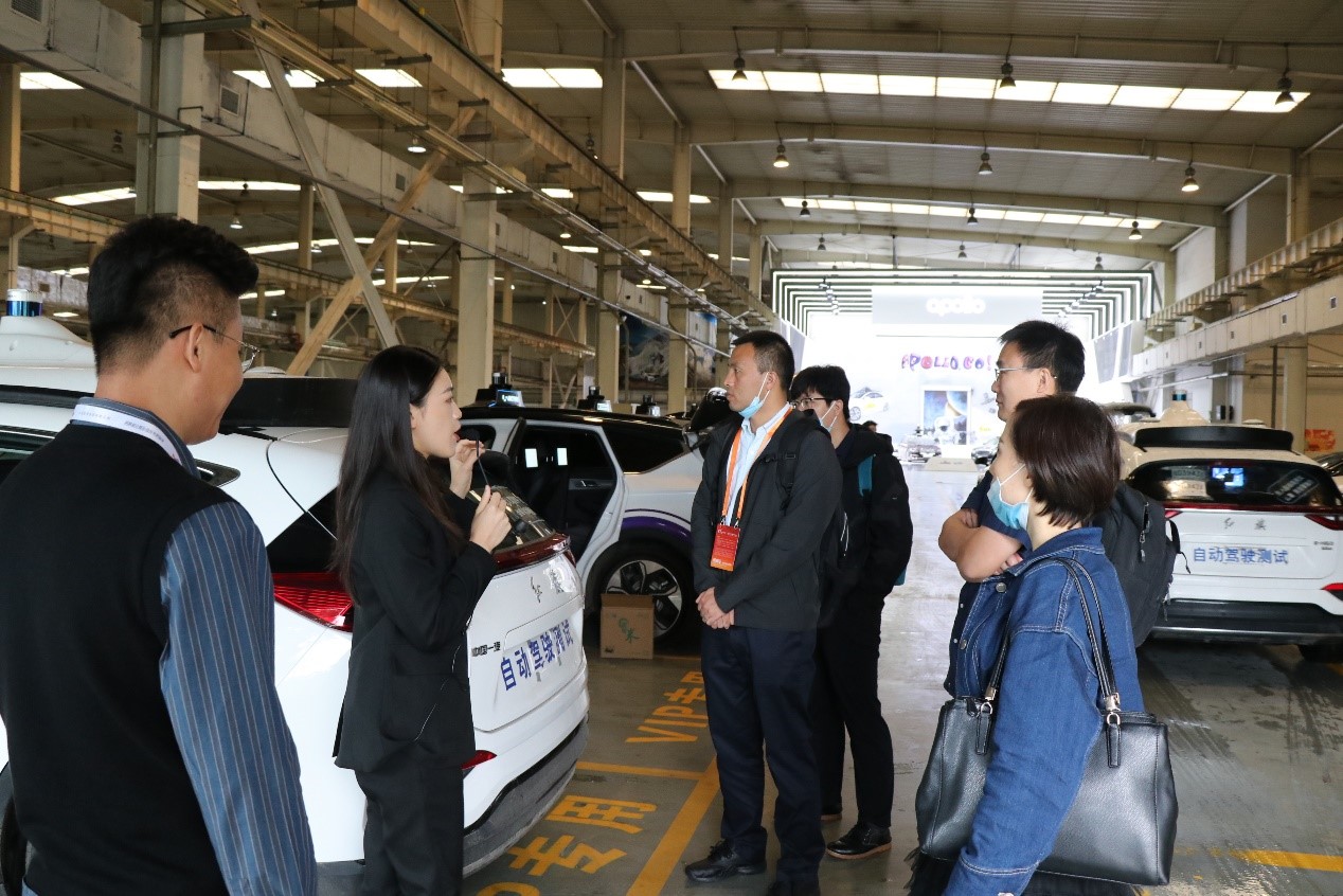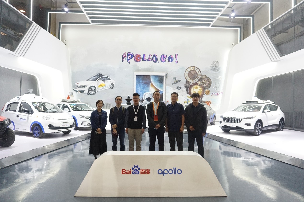科技及对外合作办公室潘昱主任、综合办公室高江波主任、人才培养办公室任福副主任、党群工作办公室赵周鉴副主任到百度Apollo Park参观,百度智能交通拓展部销售总监杜霞、高级人才生态经理刘锡乾陪同。