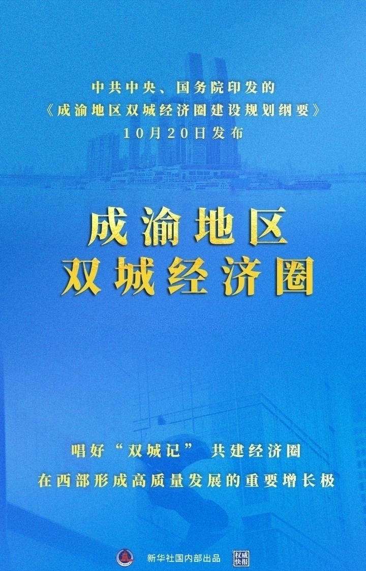 新华社北京10月20日电近日,中共中央、国务院印发了《成渝地区双城经济圈建设规划纲要》,并发出通知,要求各地区各部门结合实际认真贯彻落实。