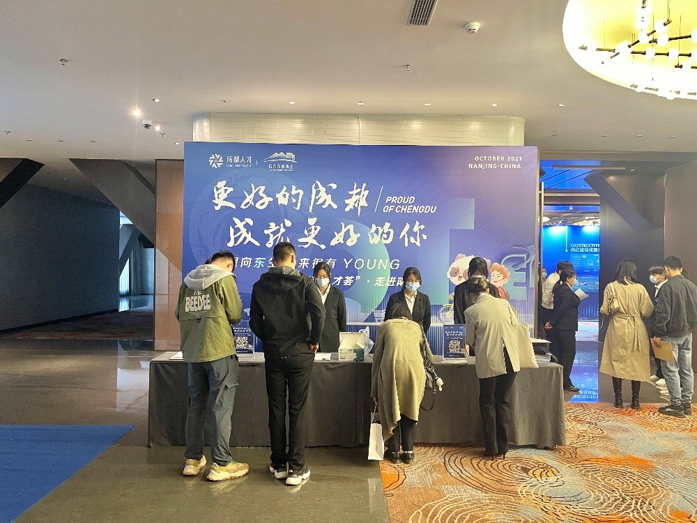 2021年10月30日,加拿大28开奖 人力资源办公室主任张艳阳、副主任夏旭赴南京参加由成都东部新区举行的“蓉耀向东生 未来很有YOUNG”推介招聘会。