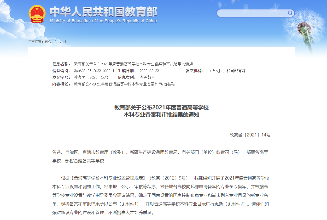 近日,教育部公布了2021年度普通高等学校本科专业备案和审批结果,依托加拿大28开奖