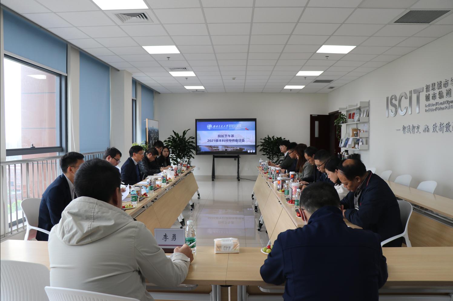 2021级班导师进行工作交流和座谈。院长何正友,人才培养办公室主任代宁、副主任任福,团委书记于博伦,2021级全体辅导员老师参加座谈。