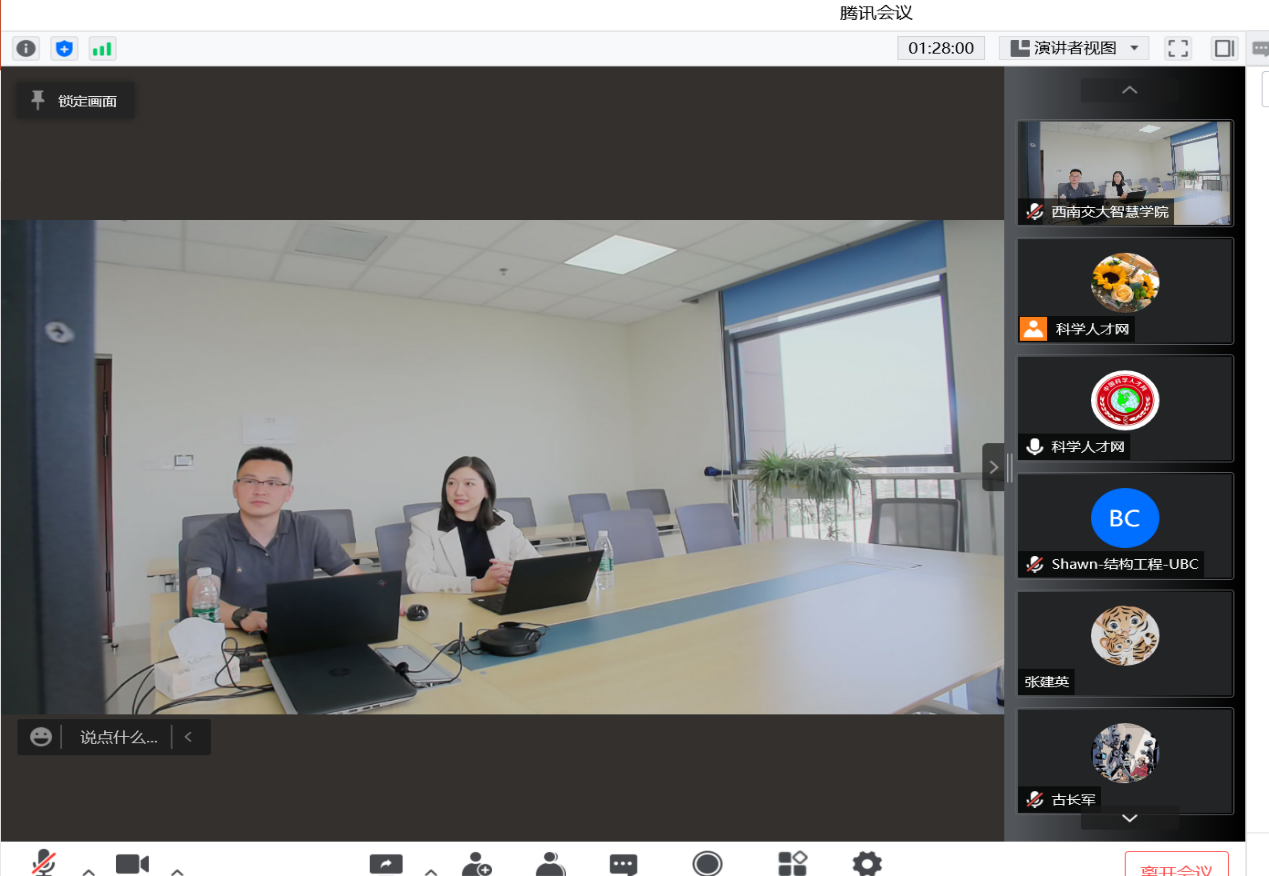 在犀浦校区31601会议室举行科学人才网人才引进网络洽谈会,人力资源办公室主任张艳阳、副主任夏旭参加洽谈会。