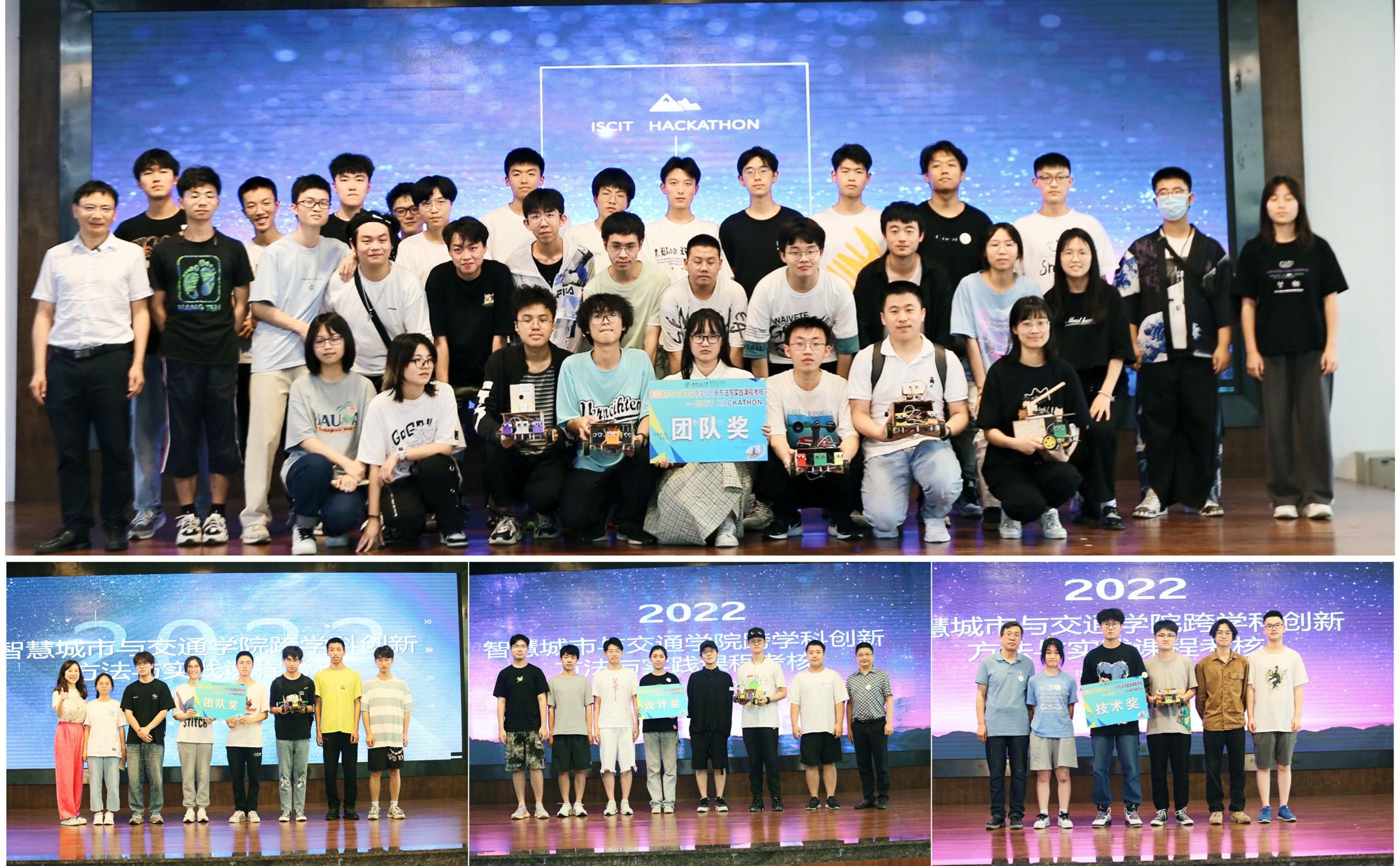 各小组分5个平行赛道向在场师生展示了机器人小车的巡线、避障、跟随等功能,并向大家介绍了作品小车的创新赋能与应用场景。评委老师根据各组学生的团队表现、作品内容、作品展示进行综合评分,最终评选出设计奖3名、技术奖4名、团队奖4名。最后,老师们为获奖团队颁奖。