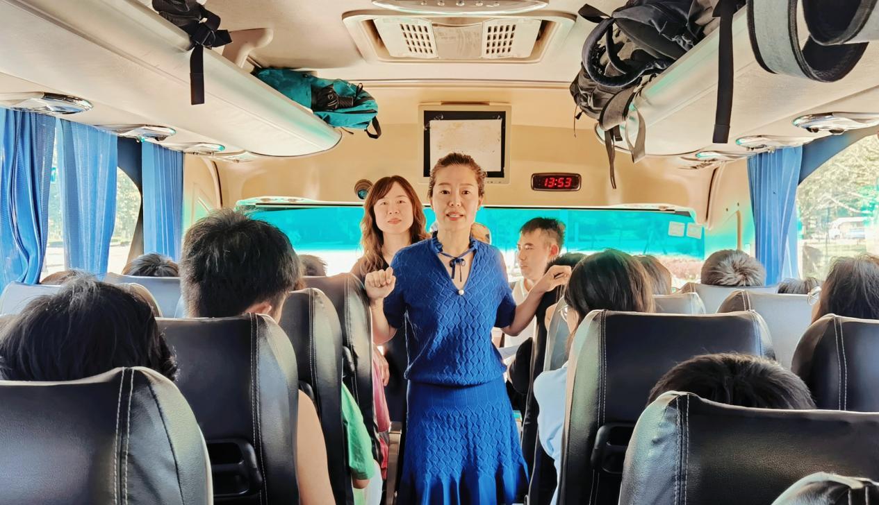 党委副书记罗妍妍在出发现场逐一上车和同学们进行交流,叮嘱同学们在实习中注意安全,并希望同学们充分珍惜实习机会,多看、多想、多问、多思,学有所获。