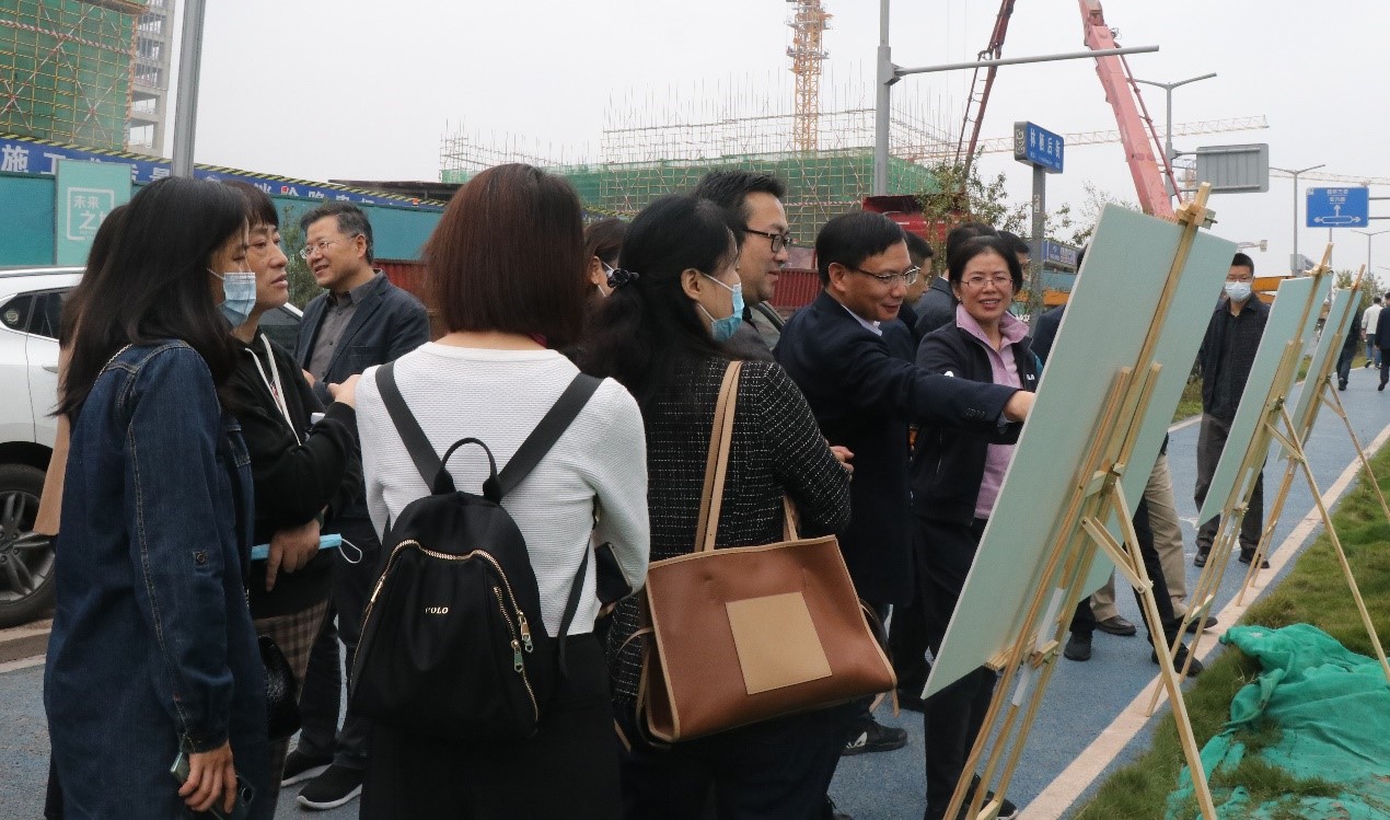 师生在现场多个点位摆放展板,向学员们详细介绍东部(国际)校区所处方位、总体布局、功能分区等情况,并解答学员们的疑问。