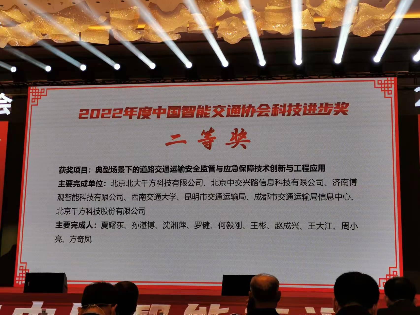 孙湛博教授等作为主要完成人的项目《典型场景下的道路交通运输安全监管与应急保障技术创新与工程应用》荣获2022年度中国智能交通协会科技进步奖二等奖。