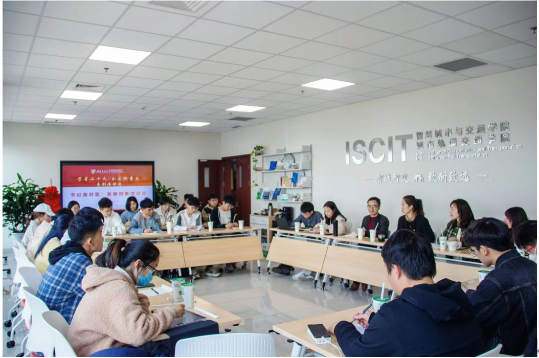 历史上首批33位党员发展对象集体恳谈,一一解答大家的问题疑惑。学生管理办公室主任夏夏、党群工作办公室副主任赵周鉴、学生第一党支部书记于博伦、学生第二党支部书记魏岚一同参加活动。