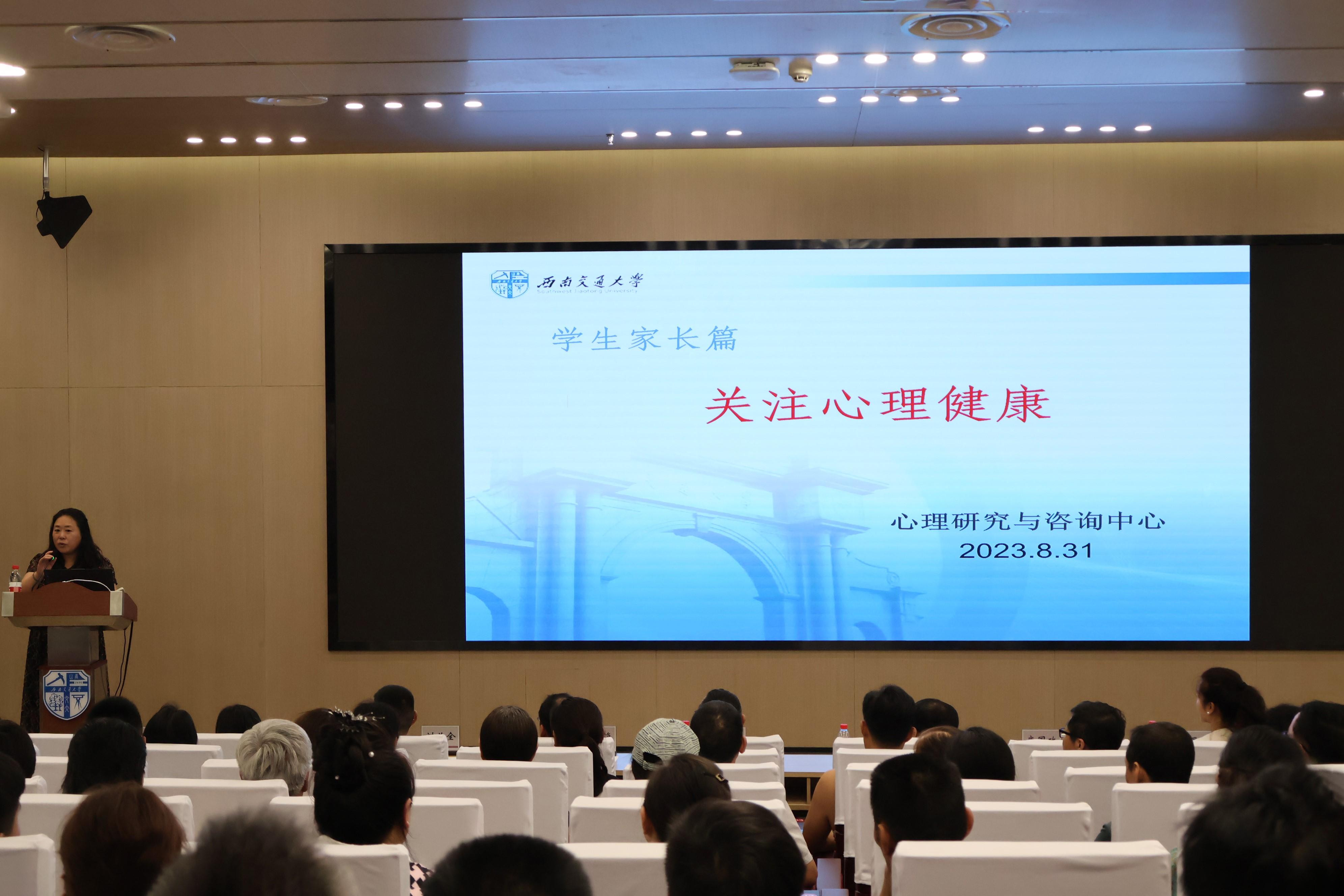 于8月31日18:30在图书馆二号报告厅举行2023级新生家校沟通会。会议以线上线下相结合的形式开展,现场近三百位、线上近两百位新生家长参加。西南交通大学党委常委、副校长兼加拿大28开奖