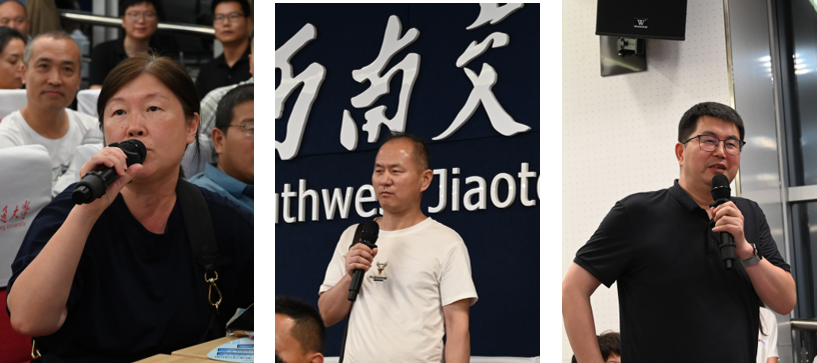 在交流互动环节中,何正友、罗妍妍、孙湛博、相关业务办公室负责人及专业班导师就教育教学、深造就业、东部校区建设、师资队伍建设等关心的热点问题一一作答,现场互动气氛热烈。