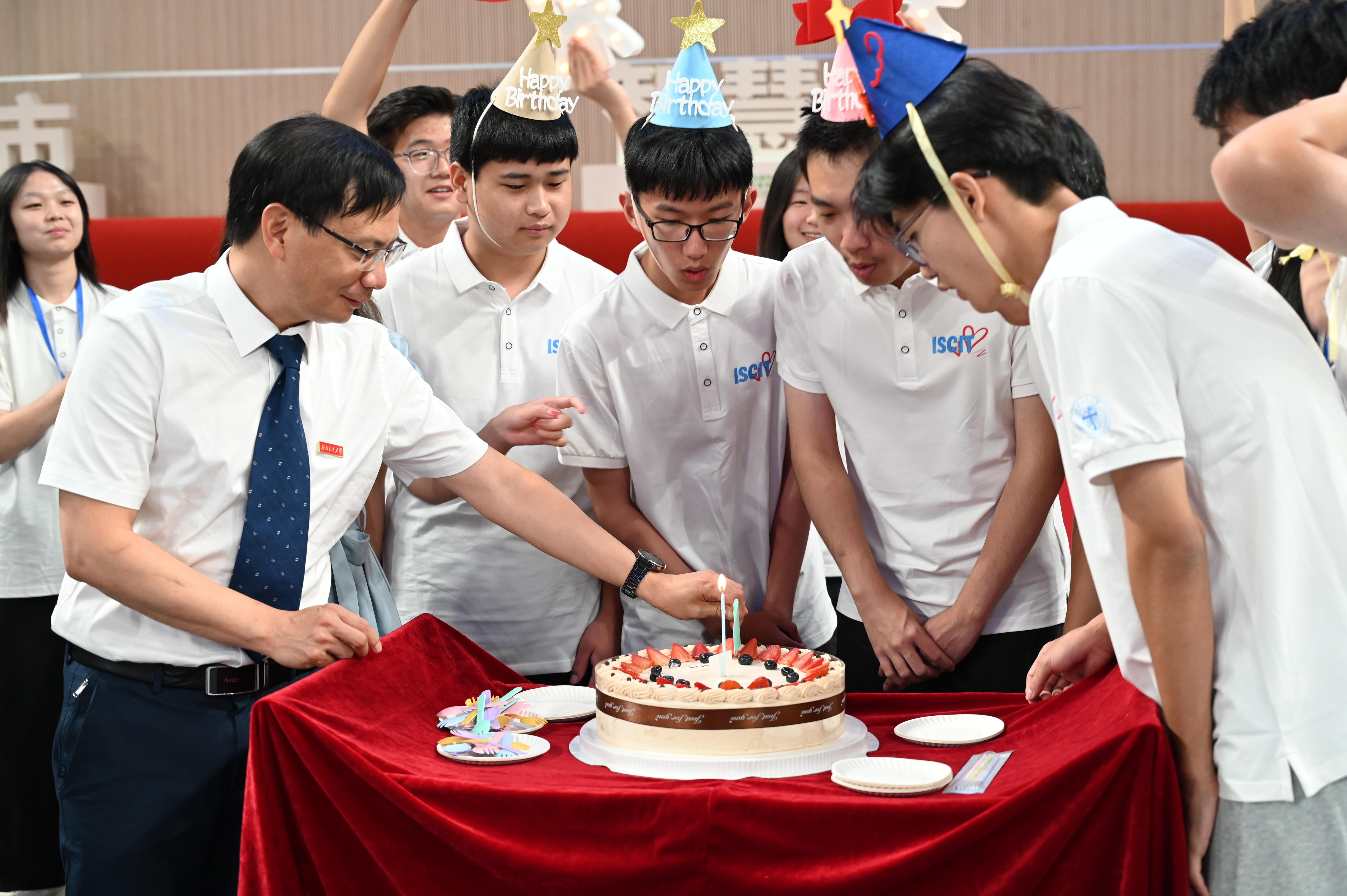 特地准备了生日蛋糕,全场新生同唱一首歌,同庆“新生”梦,为开学典礼画上圆满句号,同步开启自己崭新的人生旅程!
