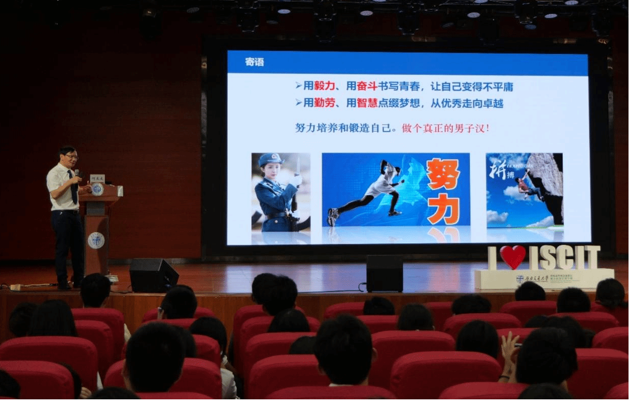 最后,何正友以“以始为终,平凡而不平庸”为主题,从“一个怎样的大学四年”“大学生能力培养”“大学生素质提升”等方面勉励新生:要注重能力培养,着意素质提升,做一个有目标、有自信的大学生。在院长幽默风趣、深入浅出的讲解下,同学们明确了培养能力和素质的重要性,纷纷表示要用毅力和奋斗书写青春,让自己变得不平庸;要用勤劳和智慧点缀梦想,从优秀走向卓越!