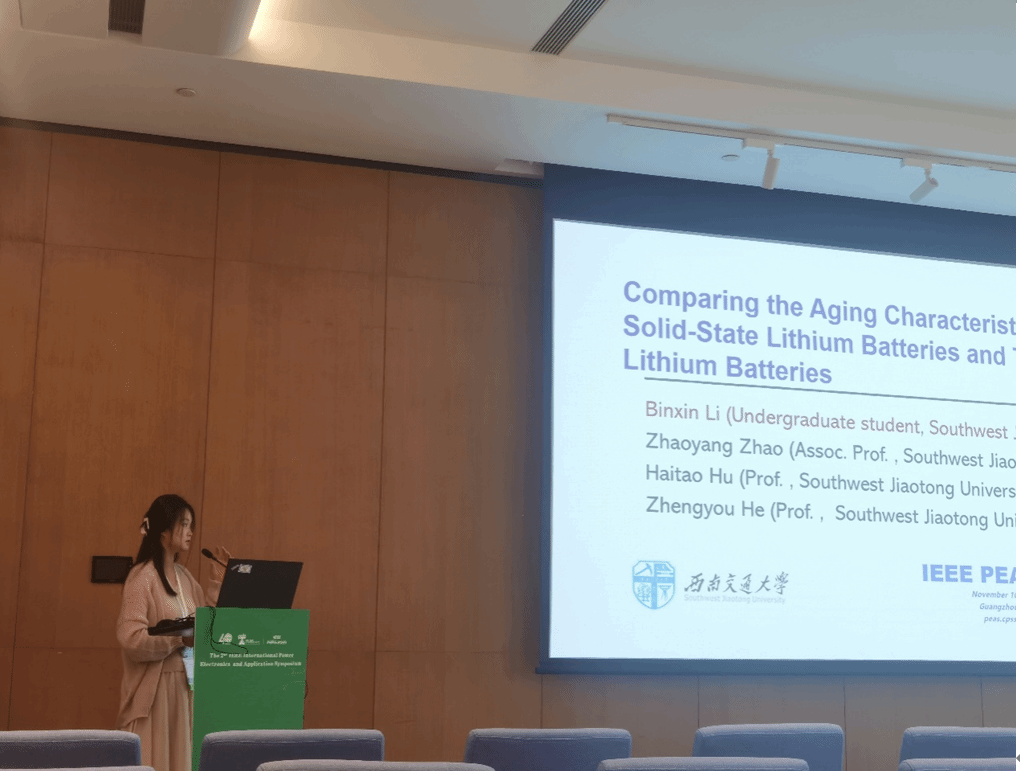 李滨薪宣讲的论文题目是《Comparing the aging characteristics of quasi-solid-state lithium batteries and traditional lithium batteries》,该论文聚焦于新型固态锂电池和传统液态锂电池的性能对比分析,相关研究得到了来自丹麦奥尔堡大学、美国弗吉尼亚理工大学等国内外学者关注。