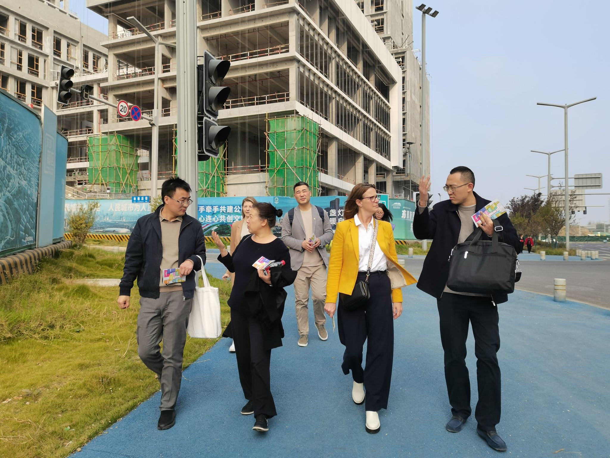 双方首先参观了成都东部新区城市规划馆以及西南交通大学东部(国际)校区,高江波结合成都东部新区作为成渝地区双城经济圈建设新支点的发展背景,介绍了东部(国际)校区的建设发展规划、办学承载条件和国际教育合作设想。Helen处长一行对成都东部新区与东部(国际)校区现有建设与未来规划表示极大的赞赏与期待。