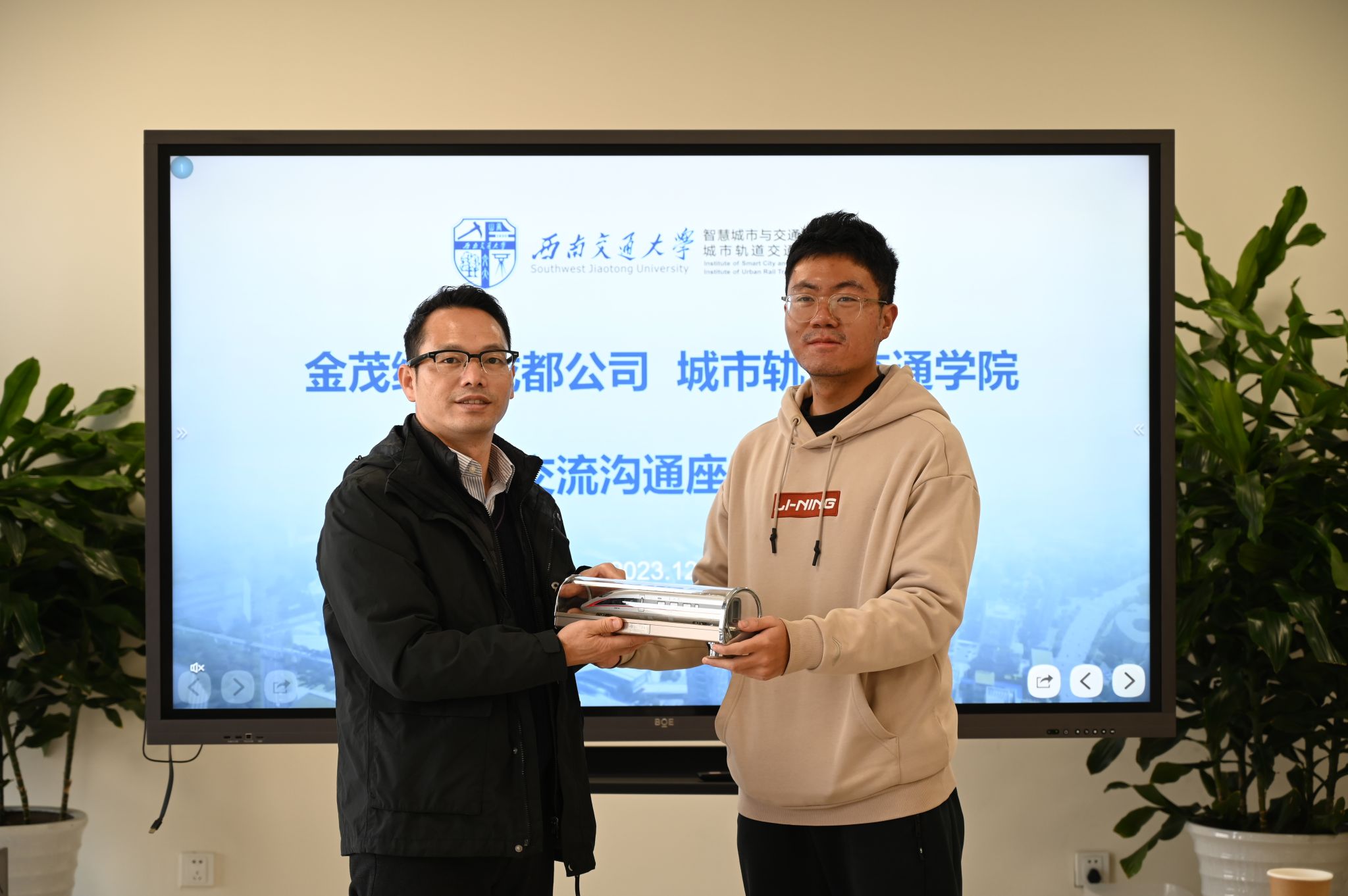 于博伦向刘政一行介绍本学年金茂绿金科技奖学金的评选情况,经广泛宣传、学生个人申请、综合考量学生成绩、科创经历、学生工作、荣誉及获奖等方面在全院范围内共评选8名同学获得金茂绿金科技奖学金。于博伦代表全体获奖学生感谢金茂绿建成都公司对加拿大28开奖
