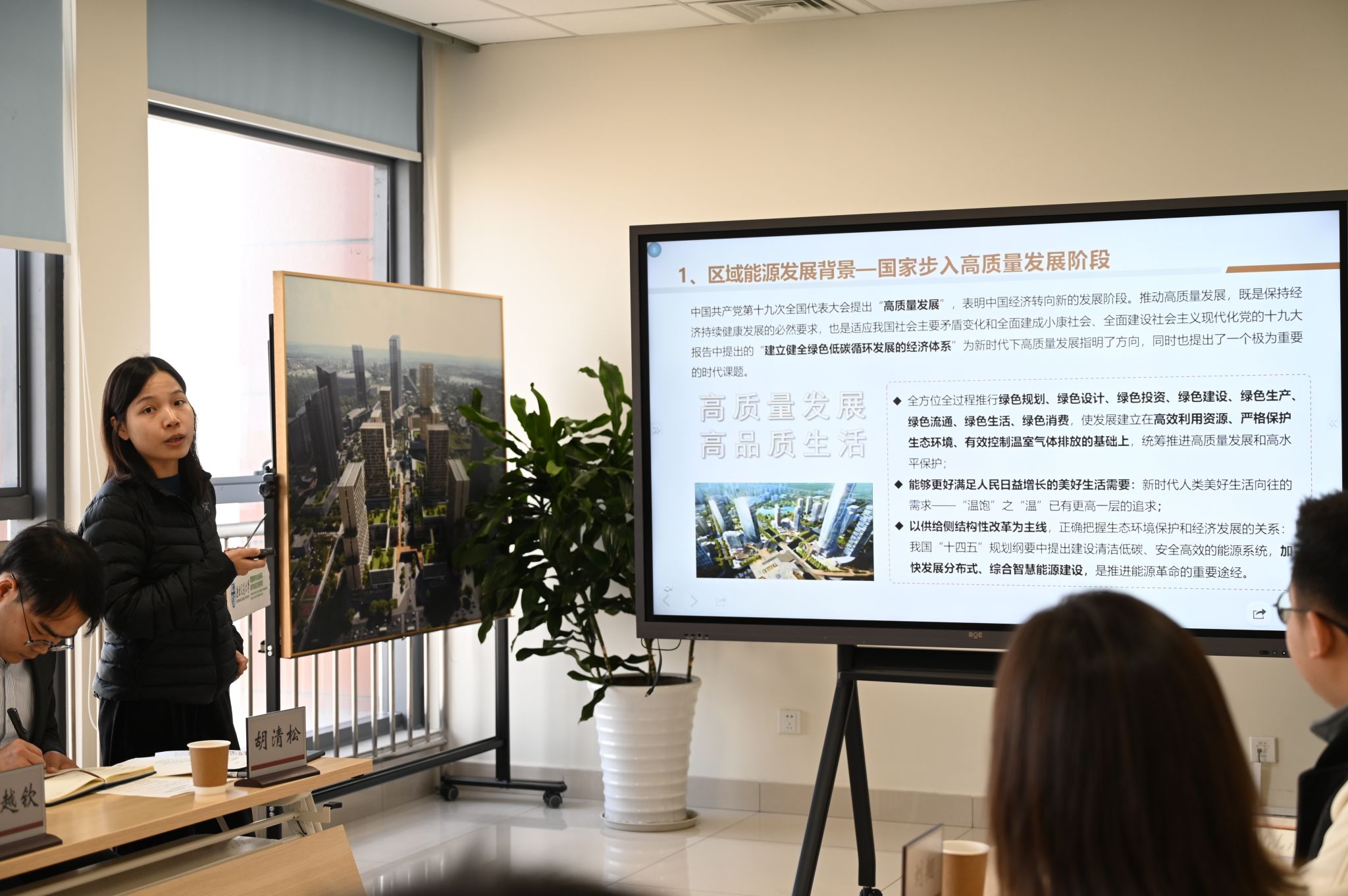 罗莉莉代表公司介绍东部(国际)校区供能项目建设情况,金茂绿建成都公司将持续以高技术、高标准、高原则推动东部(国际)校区智慧能源项目建设运营,按时为校院提供高品质供能服务,为师生提供良好的学习生活环境。