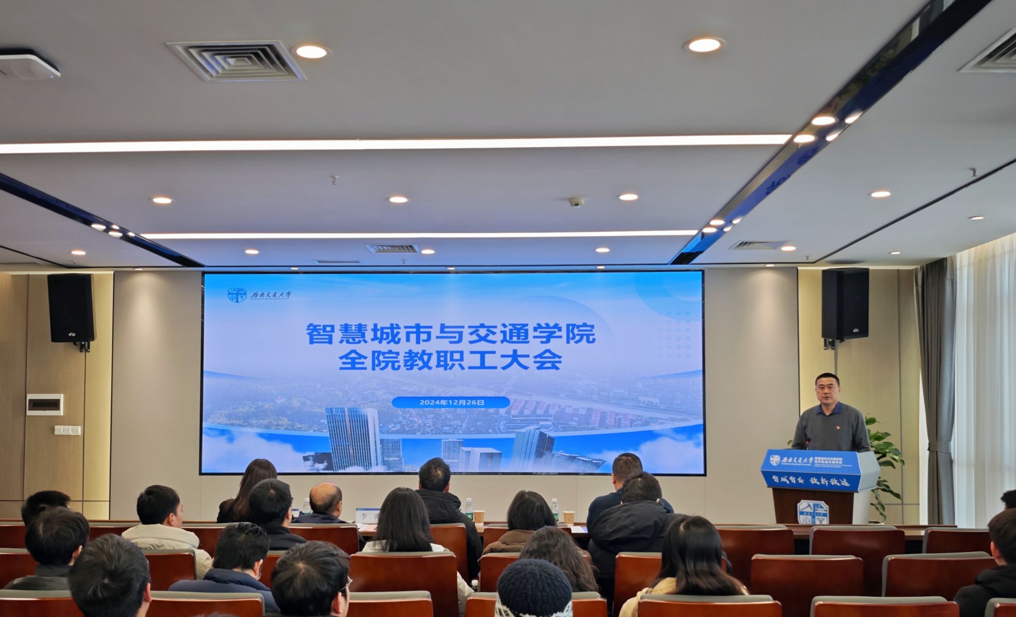 召开2024年终全院教职工大会,开展2024年度领导班子述职测评、党建满意度测评和中层领导干部述职测评。组织部正处级组织员孔书祥,校长助理、院长崔凯,党委书记李涛,党委副书记夏夏,副院长姬晓旭及全院教职工参会。会议由姬晓旭主持。