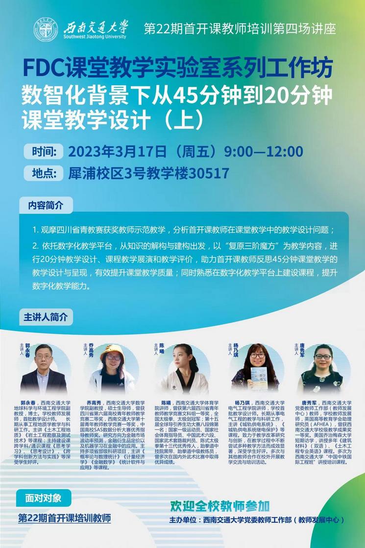 主办单位:西南交通大学党委教师工作部(教师发展中心)