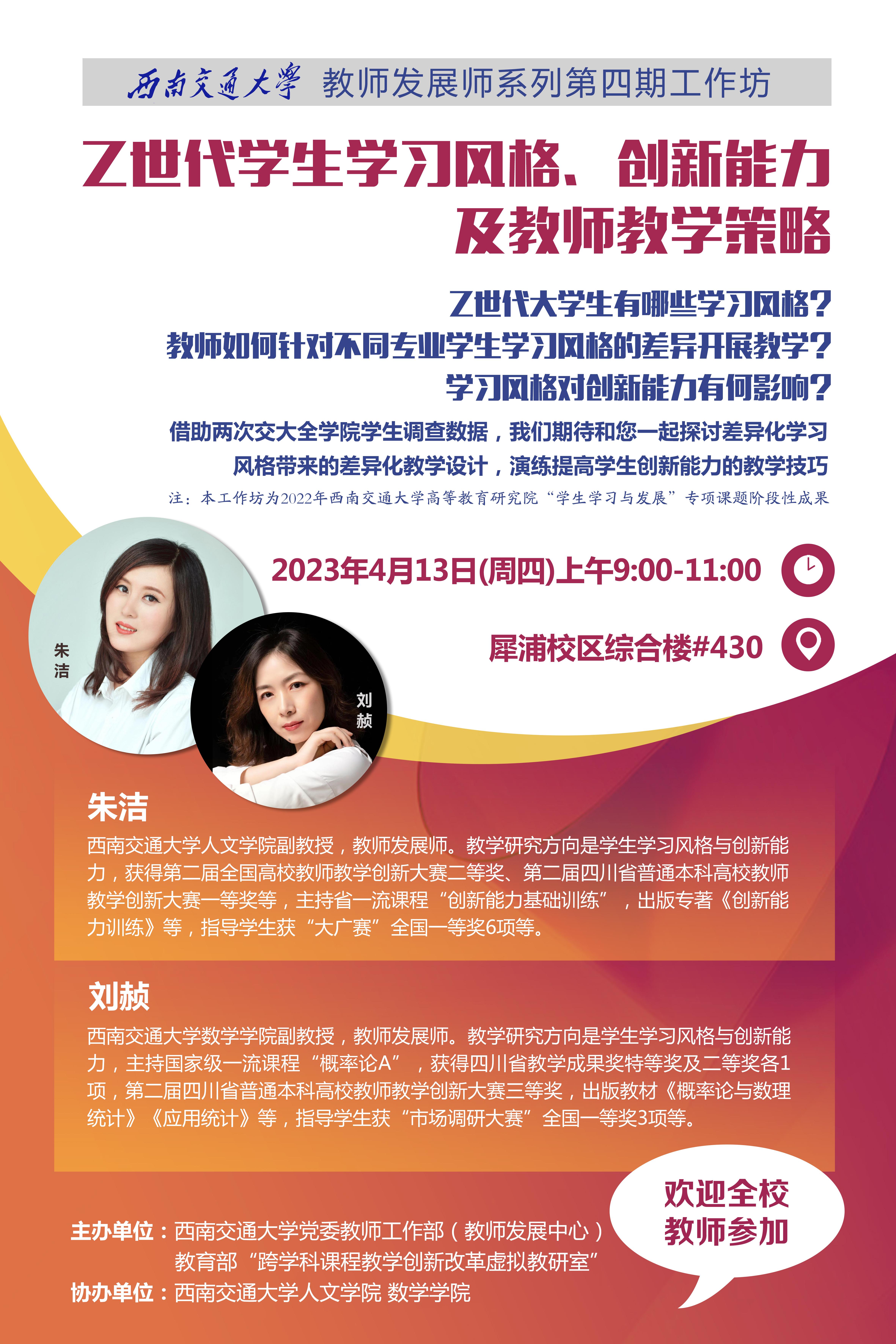 主办单位:西南交通大学党委教师工作部(教师发展中心) 教育部“跨学科课程教学创新改革虚拟教研室”
