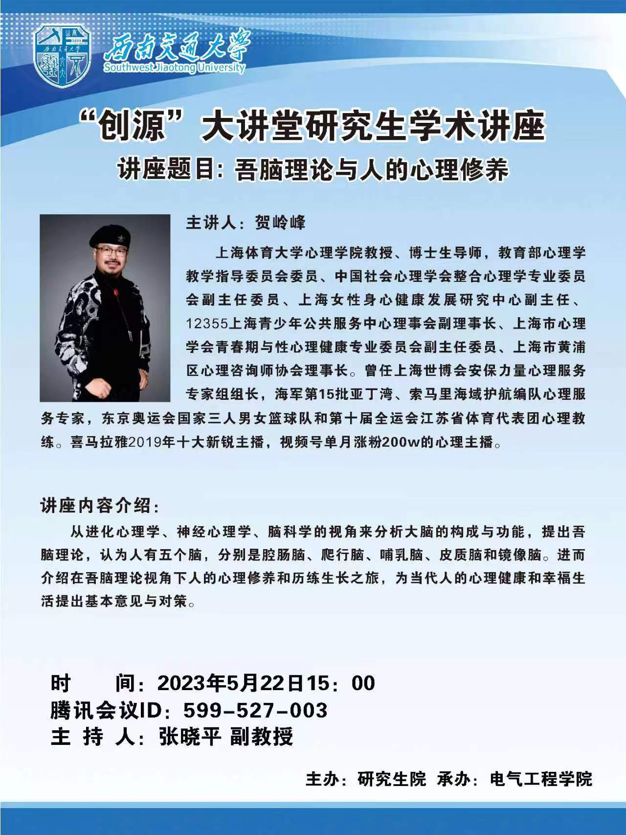 “创源”大讲堂研究生学术讲座:吾脑理论与人的心理修养