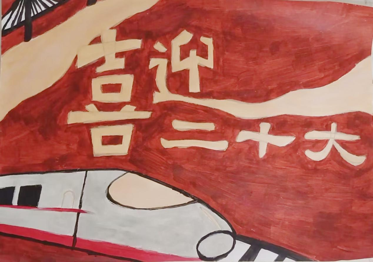 复兴号是一张光彩的“中国名片”,真实记载了中国高铁装备向世界先进行列前进的发展历程。北盘江大桥同样代表了我国在交通领域的一项举世瞩目的成果。复兴号和北盘江大桥的诞生历程中均有一个身影——西南交通大学。飘带有“挥手致意”之意,照应文字“喜迎二十大”,代表交大青年对二十大的热烈期待与美好祝愿。
