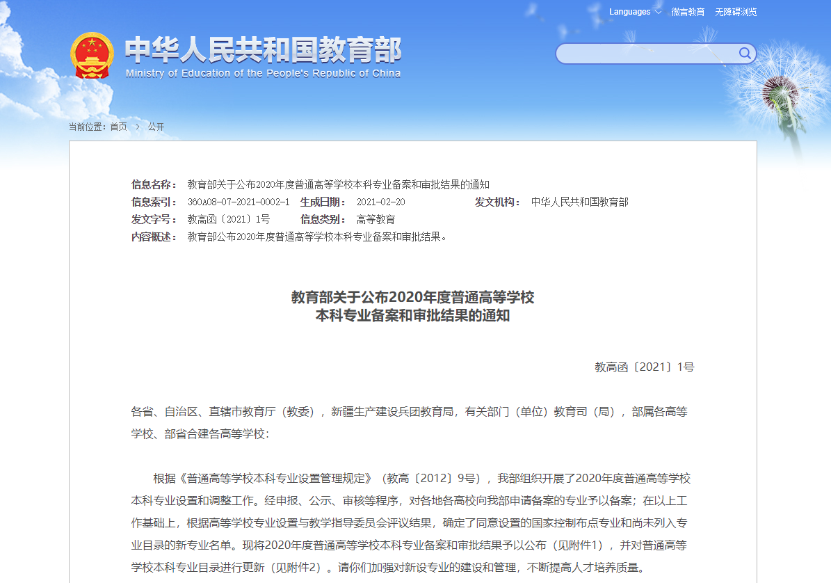 将持续加强新专业建设,瞄准未来技术发展趋势,创新引领示范,抢占交叉学科领先阵地。新专业计划2021年进行首次招生。