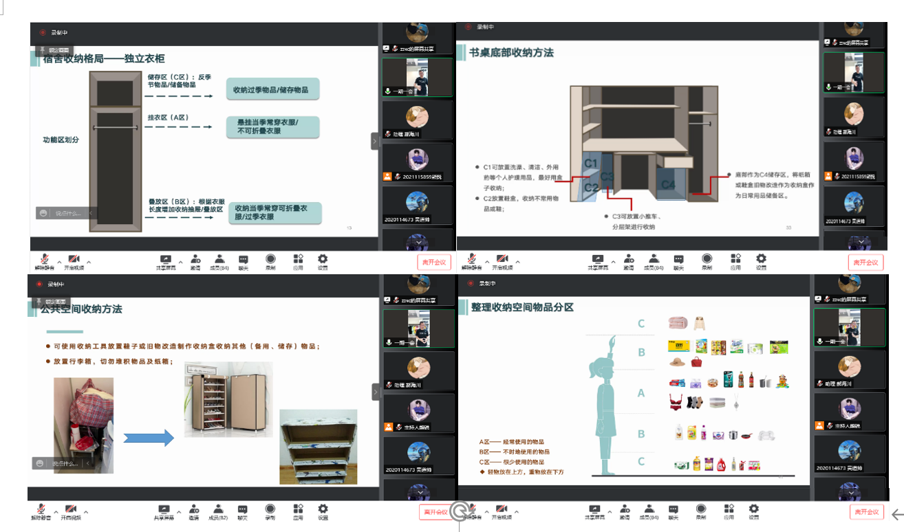 整个培训过程中,同学们热情高涨,展现出对收纳整理的极大兴趣,积极在评论区进行提问互动,两位老师也针对同学们所提出的问题进行细致的解答。