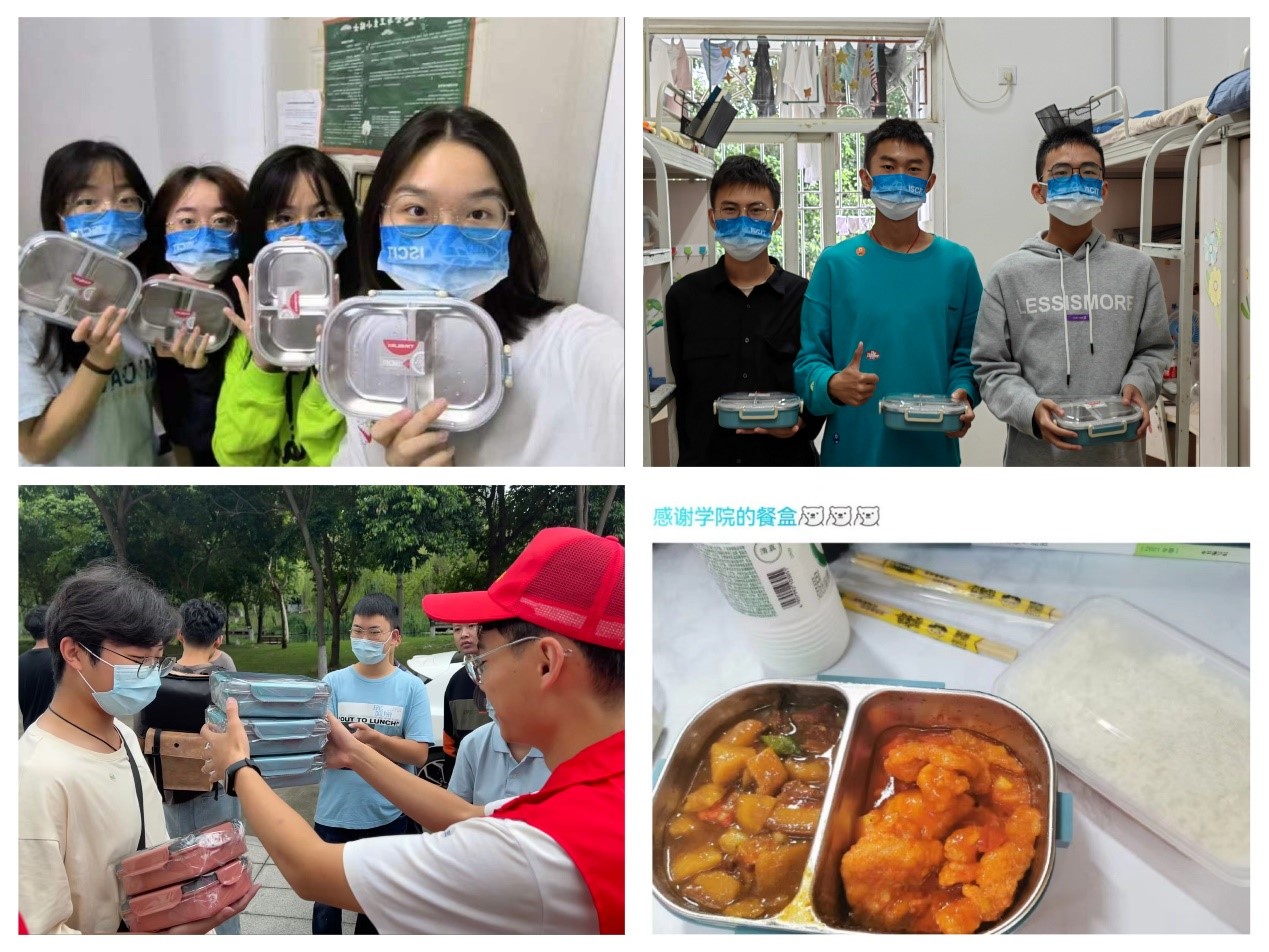 为每一位在校的同学发放餐盒
