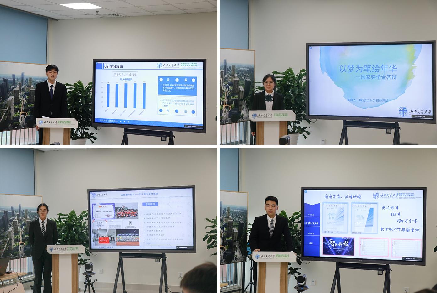 答辩会上,14名国家奖学金候选人依次上台,展示自己在专业学习、科技创新、学生工作、文体活动、社会实践、志愿服务、竞赛获奖等方面取得的成绩。每一位同学都具有高度的理想信念与使命担当,他们关注社会、乐于奉献,充分体现了新时代青年昂扬向上的精神面貌。