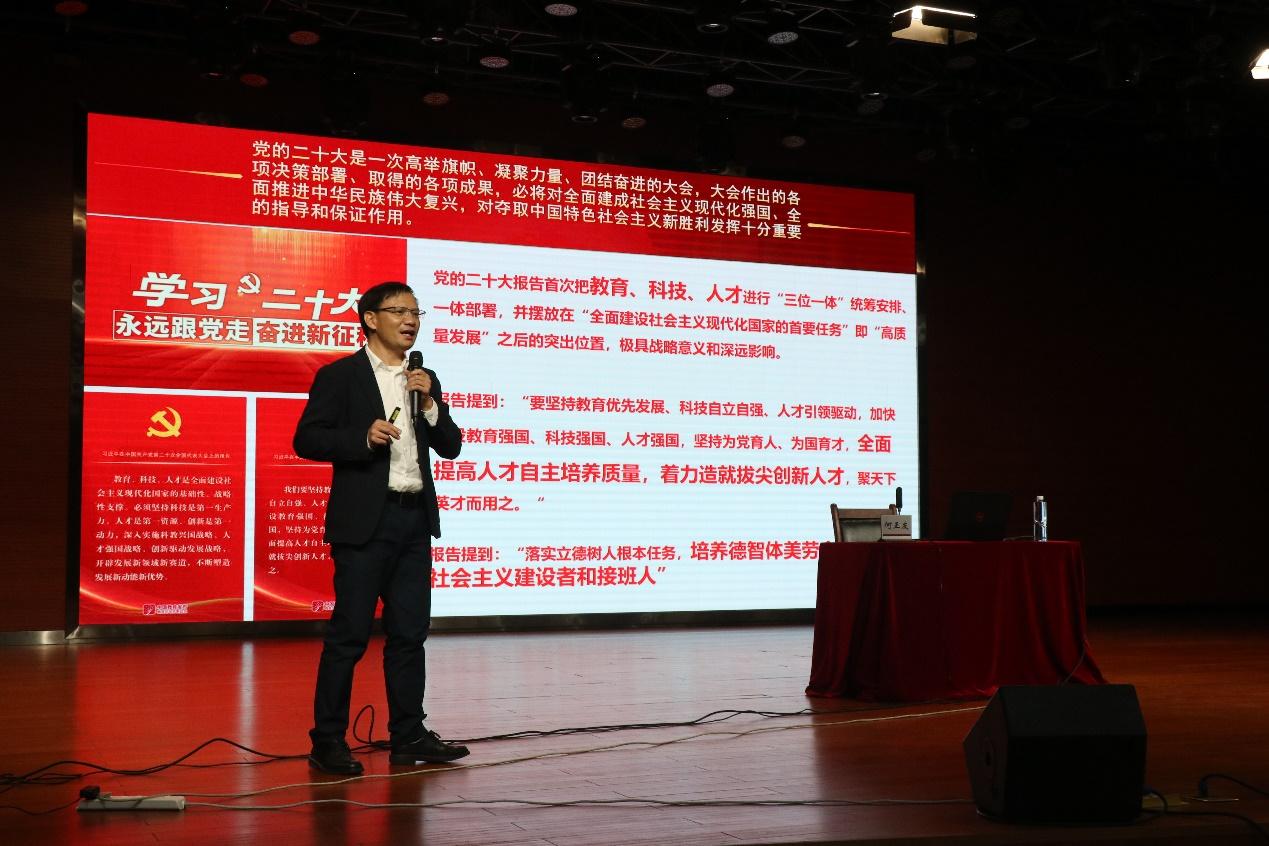 何正友首先带领全体新生学习党的二十大会议总体情况、大会报告主要精神。党的二十大报告指出,要加快建设教育强国、科技强国、人才强国,坚持为党育人、为国育才,全面提高人才自主培养质量,着力造就拔尖创新人才,聚天下英才而用之。何正友强调,全体新生要积极关注时事,立志成才,在人生规划、职业选择中将自己的小我融入祖国的大我、人民的大我之中,更好地实现人生价值、升华人生境界。