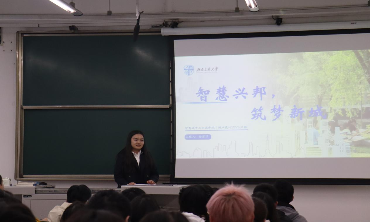 首先由城市设计2021-01班班长杨丽莎进行分享。她从班委内部的同频共振与分工合作,班委的以身作则时刻保持积极向上的状态等方面介绍了如何做好班级工作,也在科创竞赛、志愿服务、文体活动方面给予了新生班委一些个人发展的建议。