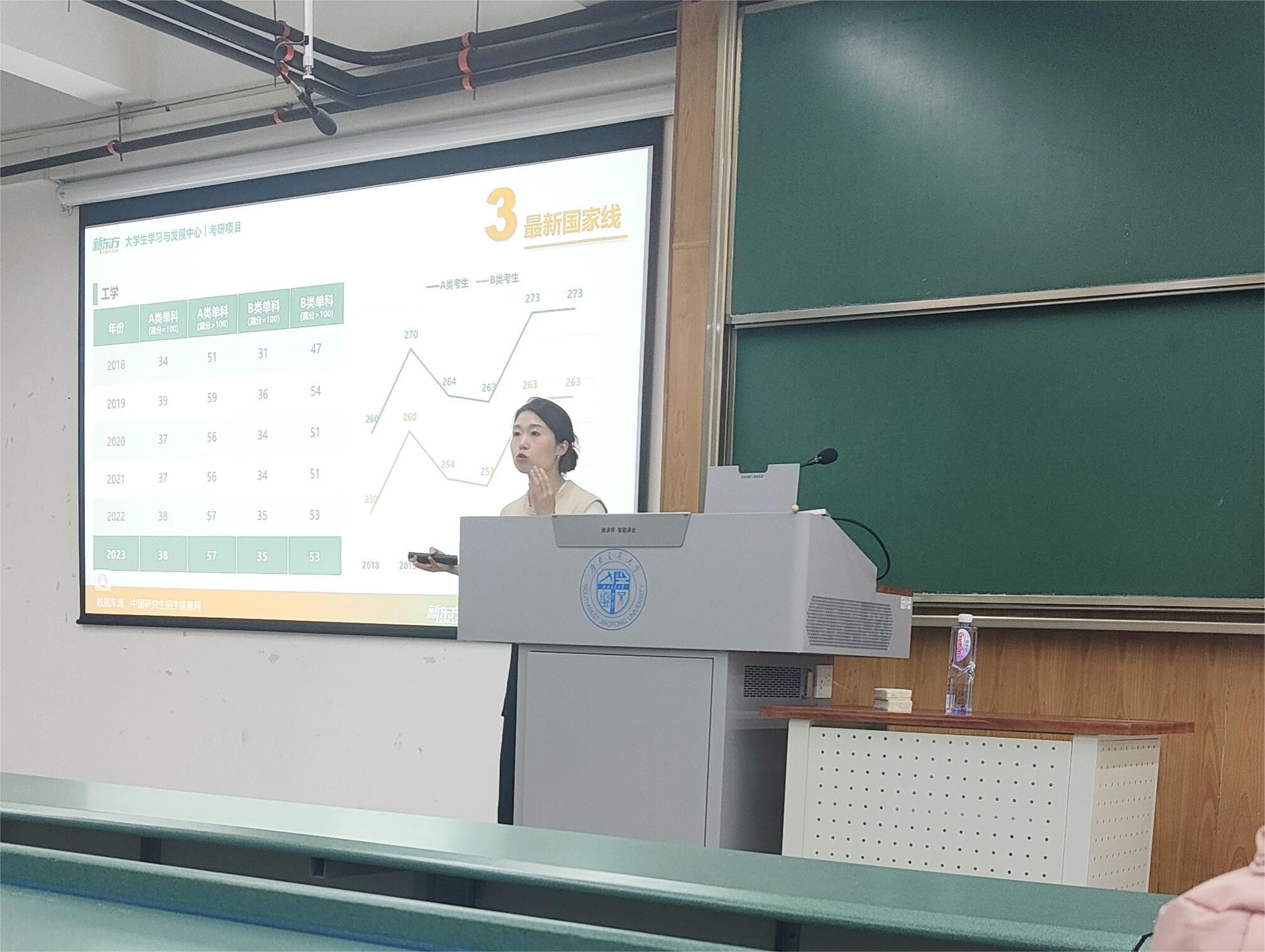 升学深造工作方案,我院学生会于10月25日在x4352教室开展考研、留学科普讲座,主讲嘉宾是来自新东方大学生学习与发展中心涂荣倩老师和前途出国的廖绿依老师,共260余名学生参与此次活动。