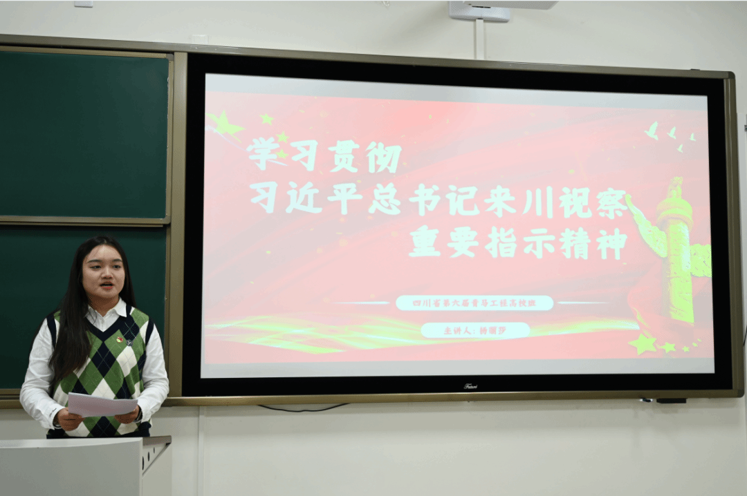 学生会主席团成员杨丽莎同学为全体学员带来培训第一讲——学习贯彻习近平总书记来川视察重要指示精神。在授课中,杨丽莎结合个人经历和感想与学员分享了自己在省级青马工程学习中的所学所悟,学员们进一步认识到习近平总书记来川视察并出席成都大运会有关活动的重大意义,准确把握习近平总书记来川视察重要指示精神的丰富内涵、核心要义和实践要求。