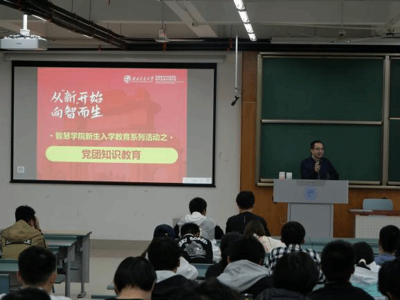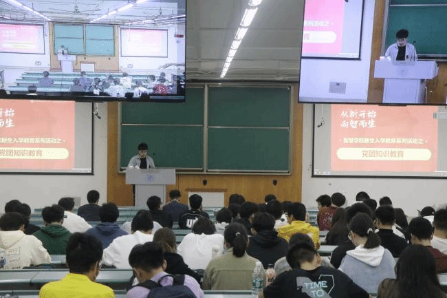 党群工作办公室副主任赵周鉴、新生辅导员刘礼钊为新生开展了“学习党团知识,争做青年先锋”主题讲座。讲座介绍了党和团的基本信息和发展历程,入党基本流程、意义和正确动机。