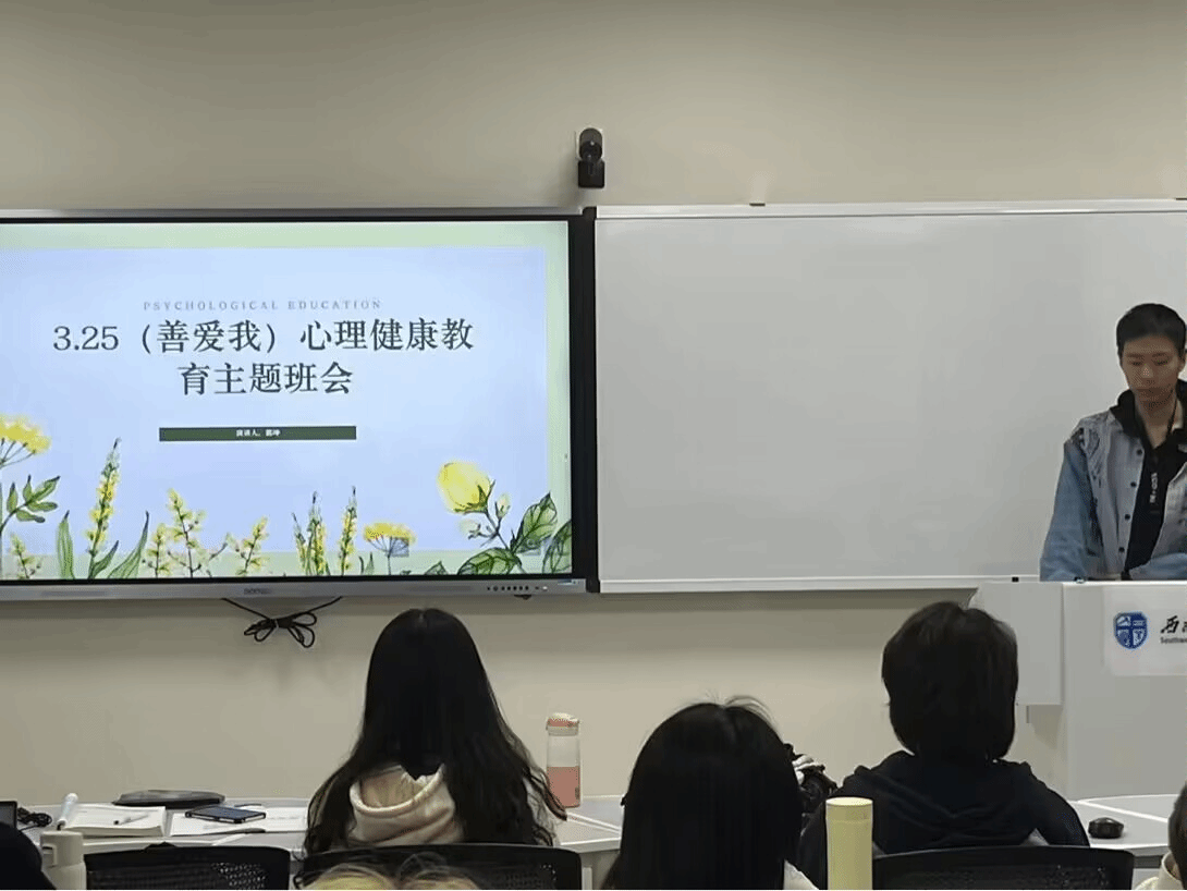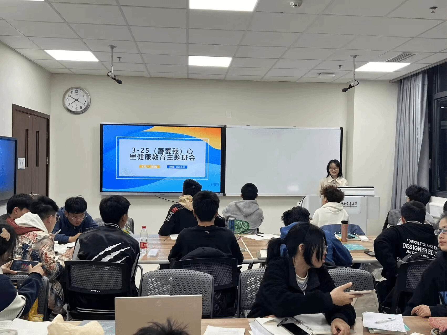 各班心理委员于3月陆续全面开展“3·25(善爱我)”心理健康教育主题班会,宣讲心理健康知识,提高同学们对心理健康的认识和关注度。各班导师、辅导员老师或朋辈导师广泛参与其中,与同学们交流和分享相关知识,给予同学们一定的指导。