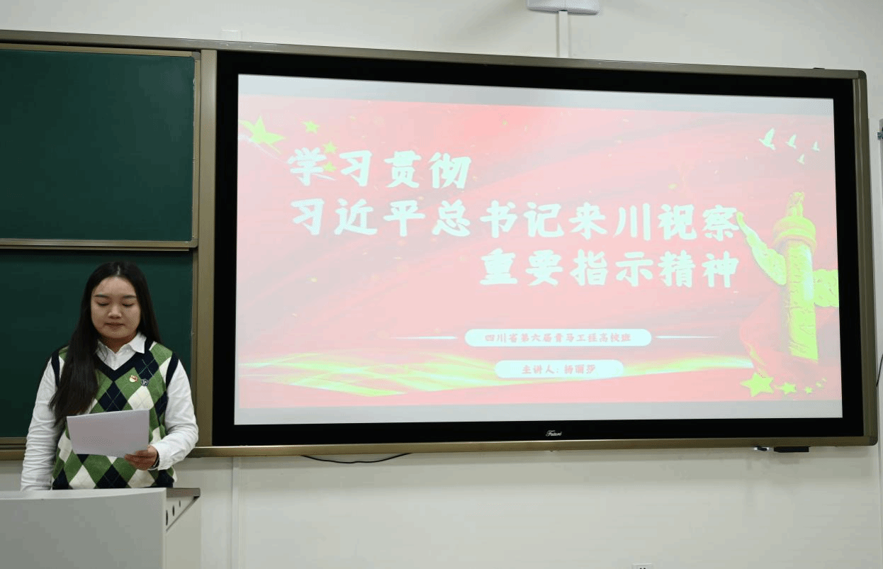 青年讲师团成员、院学生会主席杨丽莎面向青年开展以“学习贯彻习近平总书记来川视察重要指示精神”为主题的宣讲,她讲述了习近平总书记来川视察并出席成都大运会有关活动的重大意义,及习近平总书记来川视察重要指示精神的丰富内涵、核心要义和实践要求。