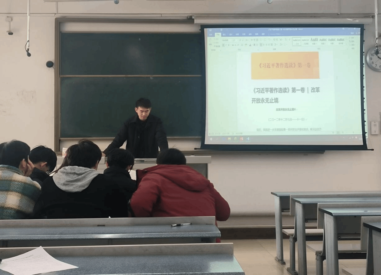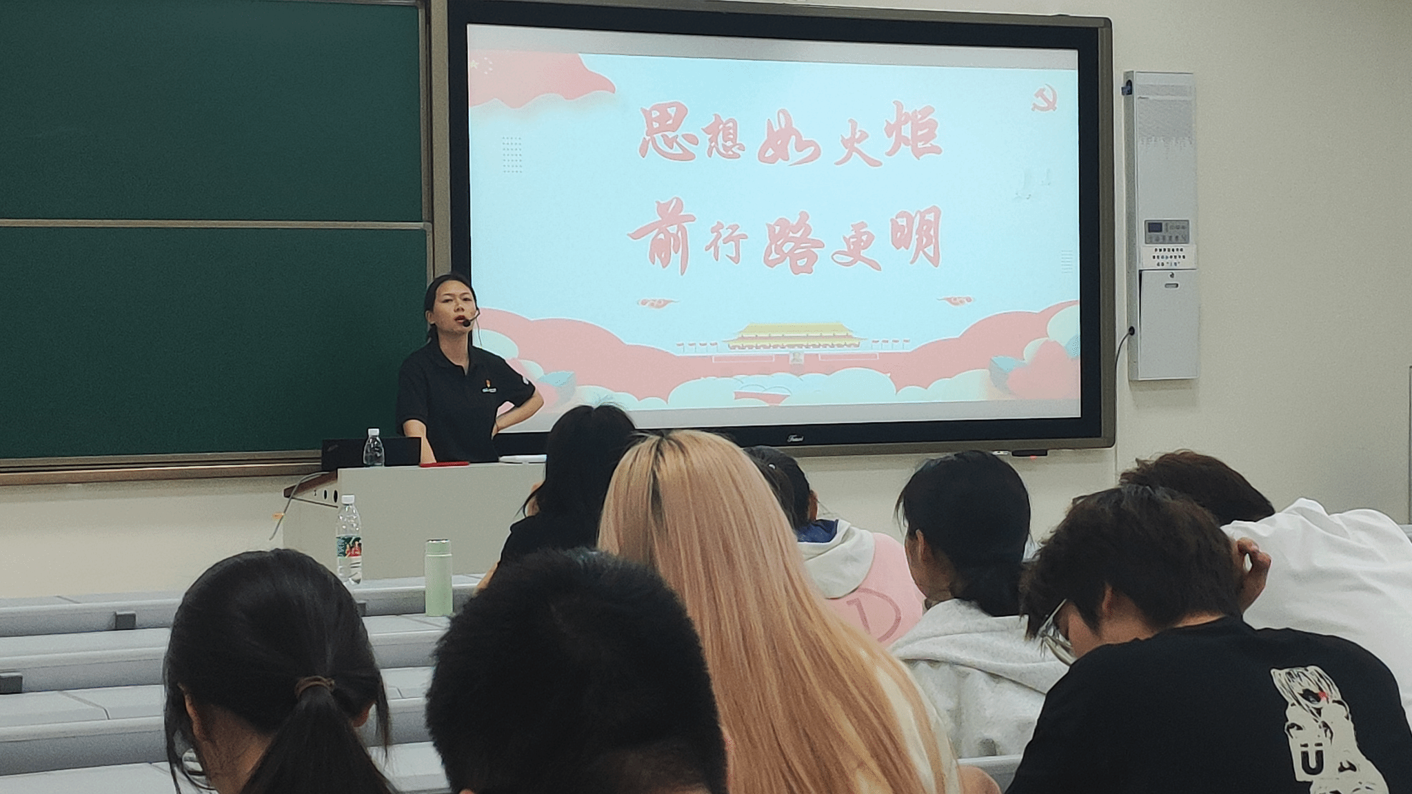 2023入团积极分子培训团课上,以“党的理论”为主题对新发展团员们进行理论教育,在课堂中,于博伦老师从马克思主义讲到习近平新时代中国特色社会主义思想,并讲述何为中国特色社会主义理论体系及其重要意义,强调“思想如火炬,前行路更明”,希望入团积极分子们能学习新思想,争做新青年。
