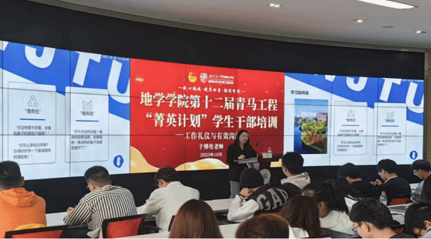 第12届青马工程“菁英计划”学生干部培训,主讲“工作礼仪和有效沟通”主题。于博伦从“何为学生干部”的问题切入,讲述了学生干部应当起模范带头作用,做老师和同学之间的桥梁纽带。具体从礼貌称呼、时间意识和时间管理、工作反馈、形象管理四个方面分类别教育我们作为学生干部应有的职业素养。学生干部应明确清晰表达四原则,训练结构化思维,学习如何倾听。从礼仪和效率两方面高度总结并教育学生干部在今后的任职道路上应以身作则、勤于奉献、待人有礼、高效作业。