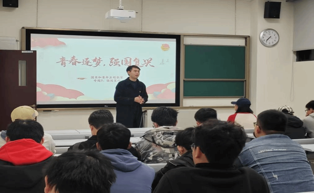 敬春元针结合团员和青年主题教育专题进行讲解。以“青春逐梦,强国复兴”等主题,围绕习近平总书记对以中国式现代化全面推进中华民族伟大复兴的战略部署的深入阐述和重要论述,结合中国国情,引导同学们要学精学深专业知识,以青春之我投入到祖国的建设中。