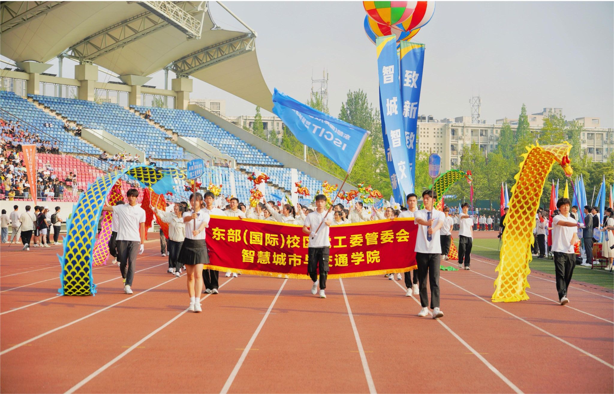 亮相运动会开幕式,师生方阵色彩夺目、口号铿锵、步伐坚定、精神昂扬,充分展示出校区和智慧师生的青春活力与运动风采。