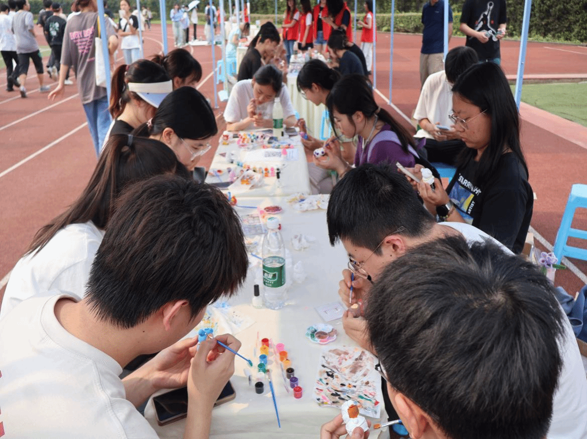 在西南交通大学2024年“3·25 (善爱我)”心理校园文化节系列之心理集市活动上举办的“涂”个开心石膏小熊手绘DIY活动人气满满。同学们通过艺术表达、深度参与的形式调适心理,放松身心。