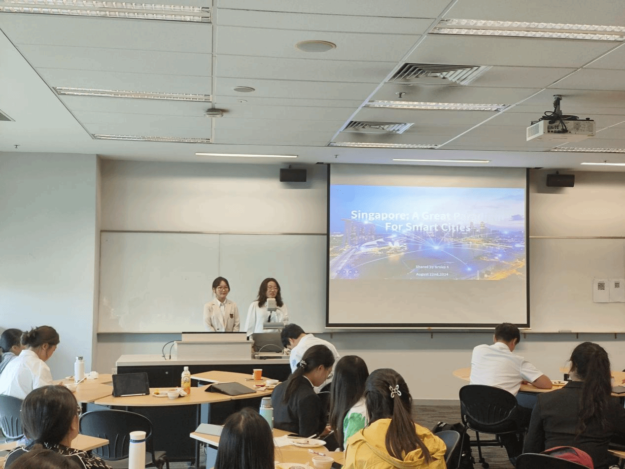 访学课程结业汇报,同学们从自身专业视角出发,围绕新加坡的智能交通、智慧城市建设进行学术汇报和互动交流。专家教授们高度评价智慧学子的创新思考、资料分析、英文表达、团队协同等综合能力,并给予优秀奖励。同时勉励队伍成员深耕研究领域,强化培养全球化视野和创新性思维。