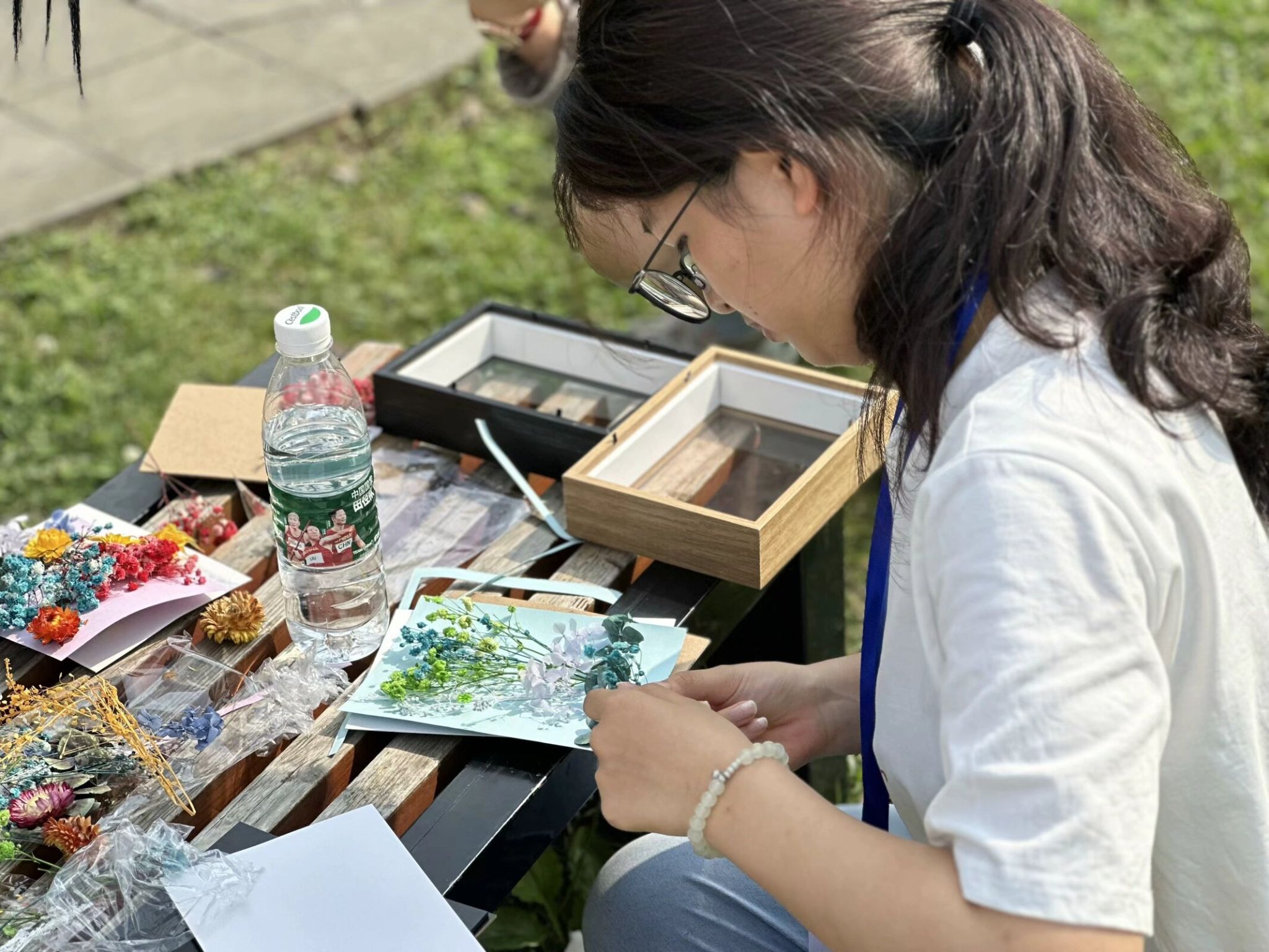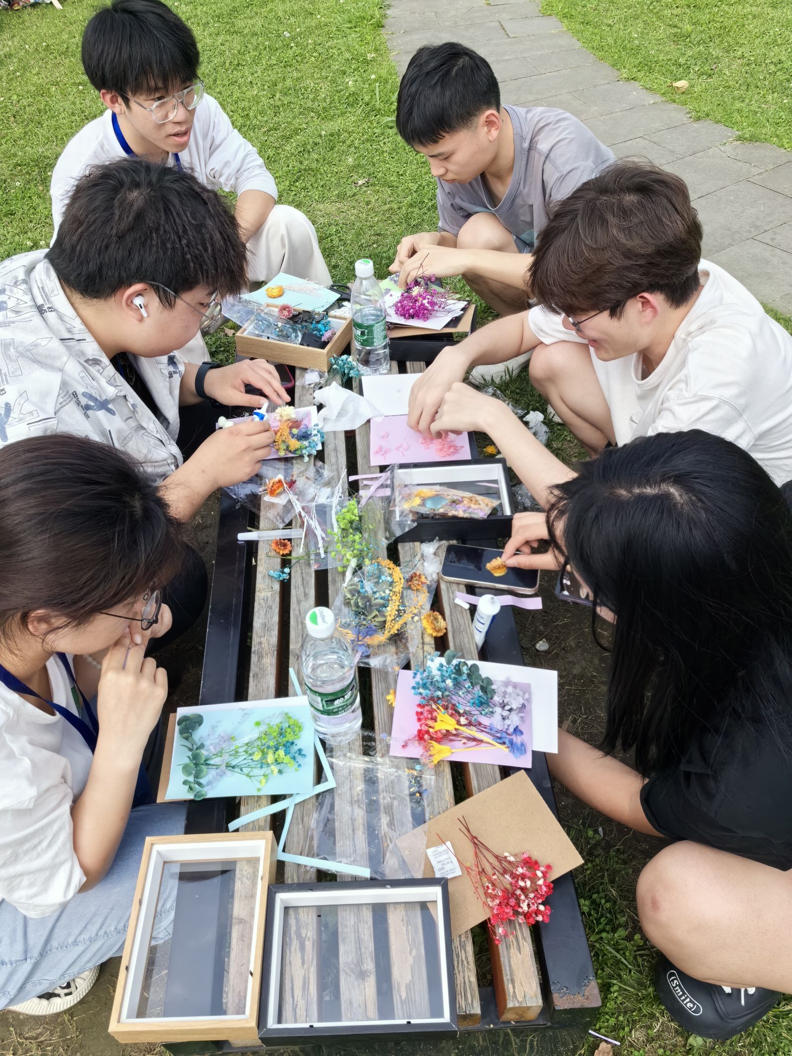 活动现场,充满了欢声笑语和忙碌的身影。同学们选取相框与干花草包,凭借个人灵感与巧思自由发挥,精心装饰相框内部,团结协作讨论设计思路,互相借鉴灵感,精心挑选每一片花瓣、每一根枝条,将青春的绚丽多彩尽情呈现。每一份作品都是青年学子对青春独特理解的具象表达,是青春活力与艺术创造力的完美融合。