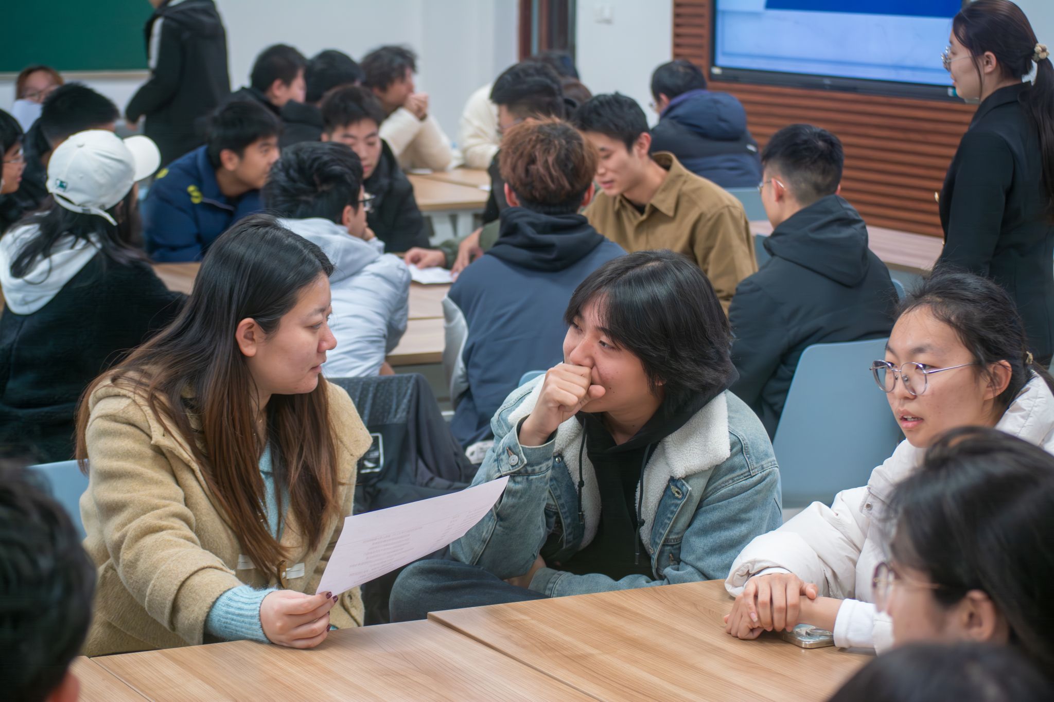 学生会和学生党支部调研收集了关于班风学风的共性问题,如“如果你的班级里有同学整天沉迷游戏,不想学习,你作为他的同学,你会怎么做?”。同学们积极展开讨论,现场氛围活跃。同时,这也引发了同学们对于班级建设、同学关系以及学习态度的深刻思考。