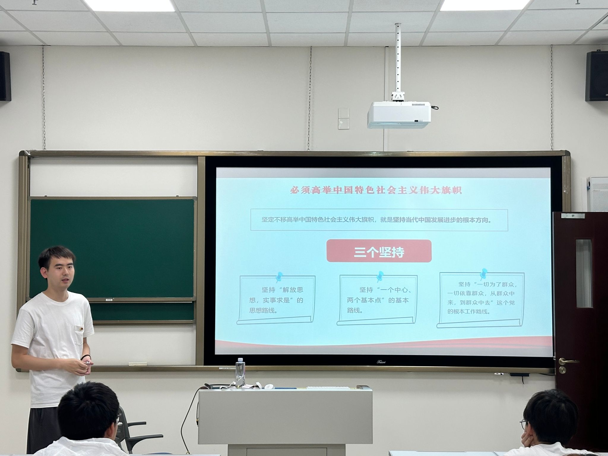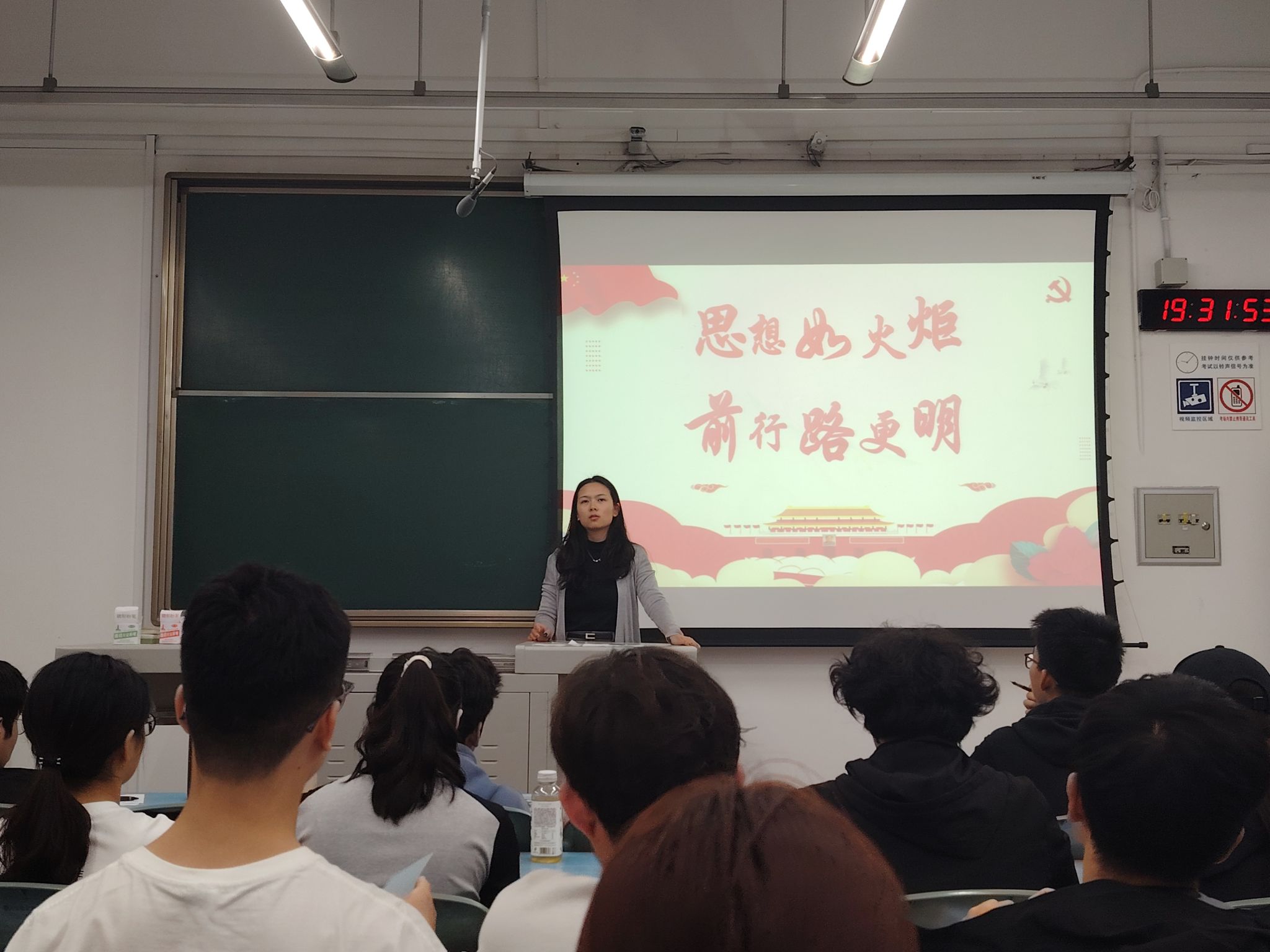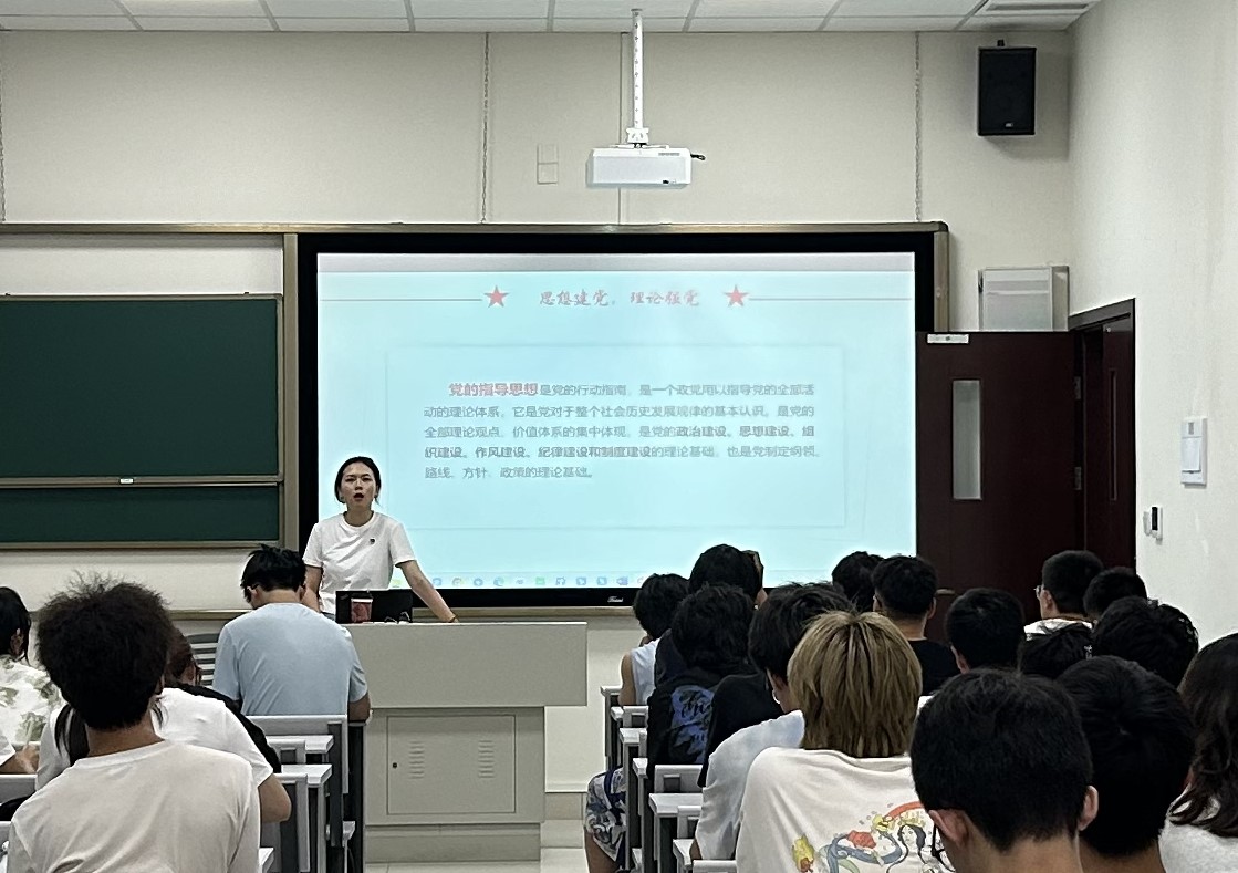 入团积极分子开展主题为“党的理论”的团课宣讲。她讲到,党的指导思想历经百年发展,波澜壮阔、成果丰硕,推动党的伟大事业从苦难走向辉煌。随后她着重讲解了思想建党、理论强党是中国共产党在长期发展过程中积累形成的宝贵历史经验和光荣传统,也是新时代新征程中国共产党人自觉肩负历史责任。党旗所指,团旗所向,本次团课引导入团积极分子领悟红色精神,传承红色基因, 进一步激励同学们积极响应共青团的号召,扩大共青团组织的力量。