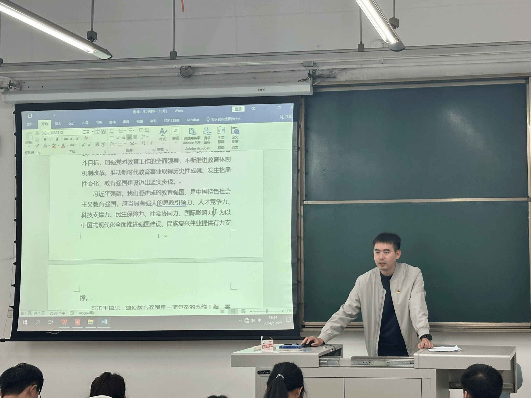 敬春元面向全院团支部书记宣讲习近平总书记在全国教育大会上的重要讲话精神,引导团员青年深刻理解教育强国的重要意义和立德树人的根本任务,激发团员青年在教育事业发展中的责任感和使命感。宣讲会上,团支书围绕“如何在学习和生活中践行立德树人的根本任务”进行讨论,并分享讨论结果和观点。最后,他鼓励全院团员青年在今后的学习和生活中积极传播和践行全国教育大会精神,以实际行动为教育事业发展贡献力量。