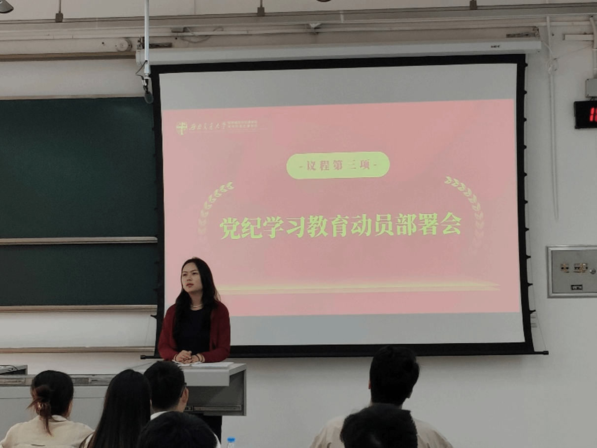 学生第一党支部、第二党支部开展党纪学习教育动员部署会暨“学条例 守党纪 强党性”读书交流会主题党日。