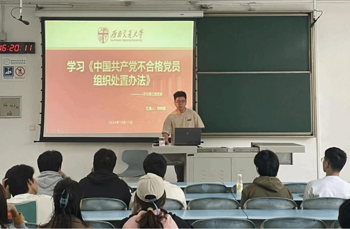 学生党支部在犀浦校区开展10月主题党日。罗浩元同志领学习近平总书记在全国教育大会重要讲话和全国教育大会精神,介绍了大会的基本情况,深入学习习近平总书记关于教育强国的科学内涵和基本路径的重要讲话内容。