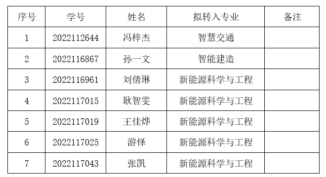 2023年转专业拟录取学生,现将名单予以公示,公示期2023年9月7日至9月9日。